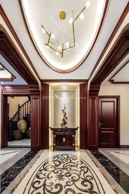 本案在結(jié)構(gòu)上也做了較大調(diào)整。原結(jié)構(gòu)空間沒有層次,原樓梯與整體空間沒有互動(dòng),沒有獨(dú)立的餐區(qū),原衛(wèi)生間沒有采光等諸多問題。經(jīng)過設(shè)計(jì)師的精心安排,進(jìn)入空間,映入眼簾的是富有藝術(shù)氣息的玄關(guān)區(qū),讓整體空間層次豐富、富有內(nèi)涵和氣質(zhì)。有了獨(dú)立的餐區(qū),讓飲食賦予享受、賦予健康。樓梯與書房之間的半開放式處理,讓彼此空間有了更多的交流,讓采光和通風(fēng)上升新的高度,讓整體空間更加流暢與和諧?!?span style="color:#E53333;">此案例榮獲2017年德高星藝杯室內(nèi)設(shè)計(jì)大獎(jiǎng)賽住宅項(xiàng)目設(shè)計(jì)工程實(shí)景獎(jiǎng) 優(yōu)秀獎(jiǎng)