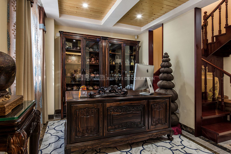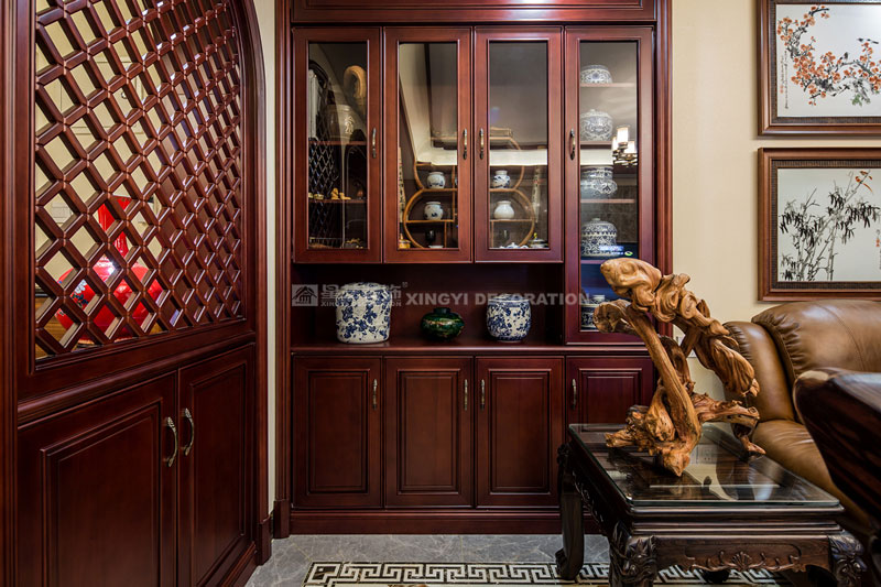 盡覽古韻風(fēng)采,演繹新式風(fēng)華。這是設(shè)計(jì)師對(duì)本案的情懷,整體空間裝飾都采用簡(jiǎn)潔簡(jiǎn)約的線條,干凈隨性。無論是家具、裝飾還是硬裝的處理,都迎合了現(xiàn)代人對(duì)中式家具追求的內(nèi)斂、質(zhì)樸分格。整體空間也更加實(shí)用、富現(xiàn)代感。而素雅的黃色調(diào)與厚重的木色,在燈光的反襯下,更顯舒適時(shí)尚、層次豐富、空間感強(qiáng)。而展示柜上的精妙小品,造就了可細(xì)琢的一景。整體空間感更加豐富,大而不空、厚而不重,有格調(diào)又富藝術(shù)氣息。