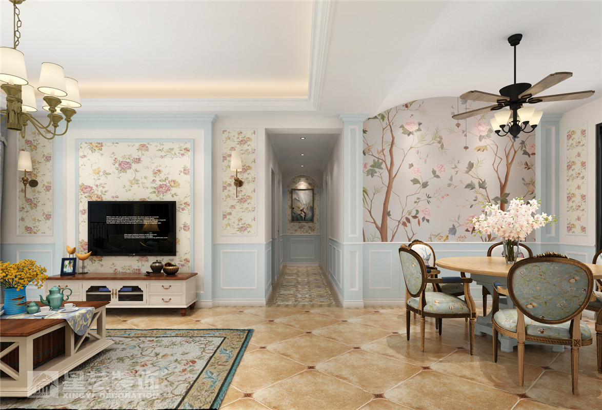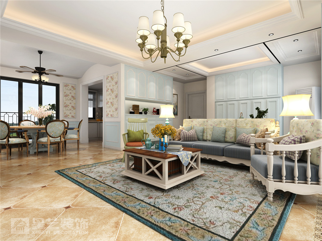 南寧星藝裝飾陳忠波設(shè)計師專業(yè)設(shè)計的招商雍景灣127平田園風格裝修案例