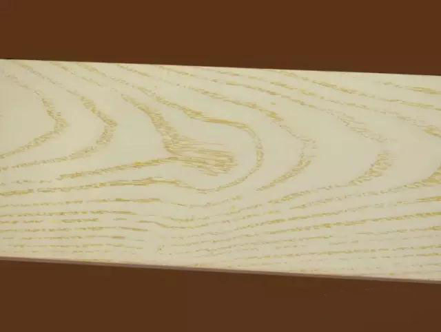 為了更方便大家識別和了解,我們拿了一塊上白色漆的,可以清楚看到自然的木紋,手摸有明顯的凹凸感。