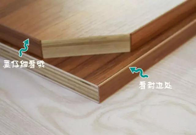 可能有不少人有疑問說,現(xiàn)在貼皮的也可以貼得很仿真,確實是這樣,所以這時候,我們要看木板的橫截面