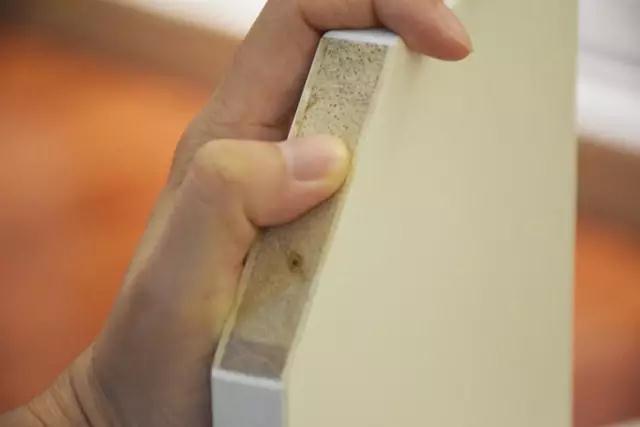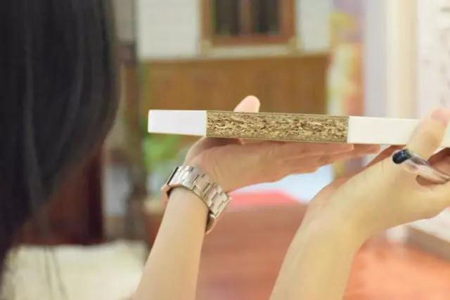 你還可以去摸橫截面的光滑度,好的實木顆粒板摸上去也是很平滑的,不會有雜質(zhì)。