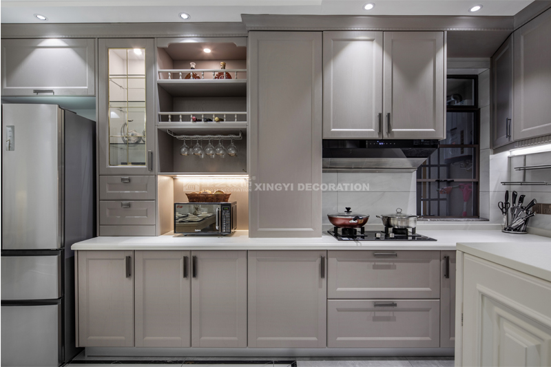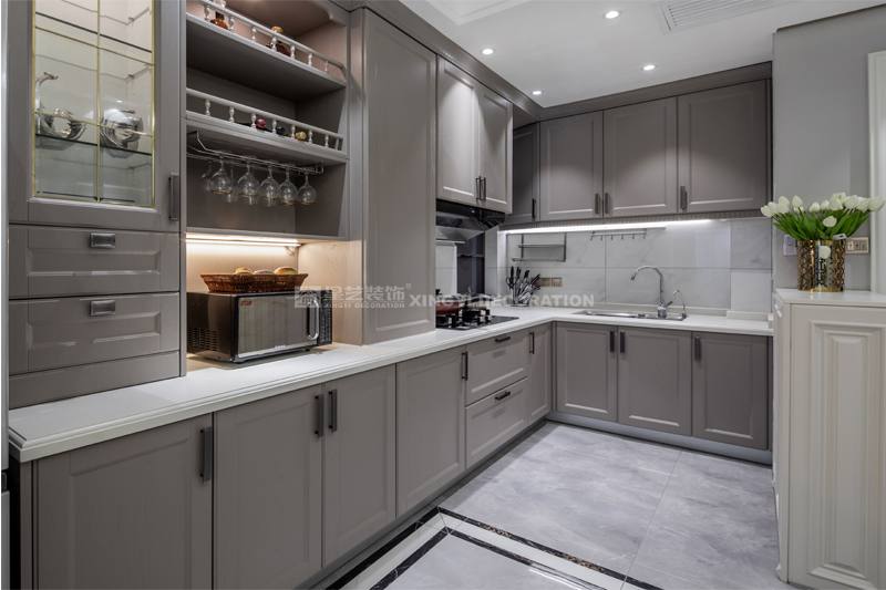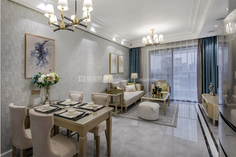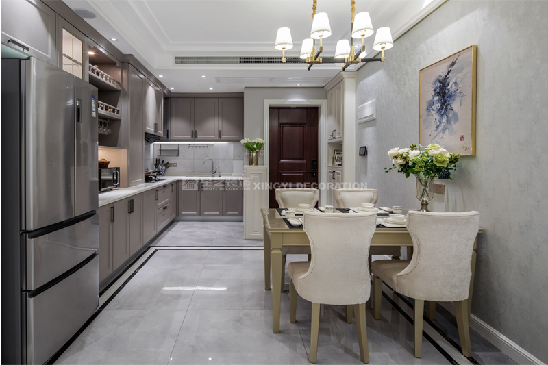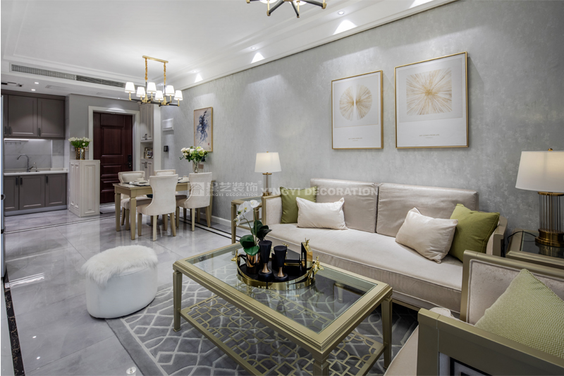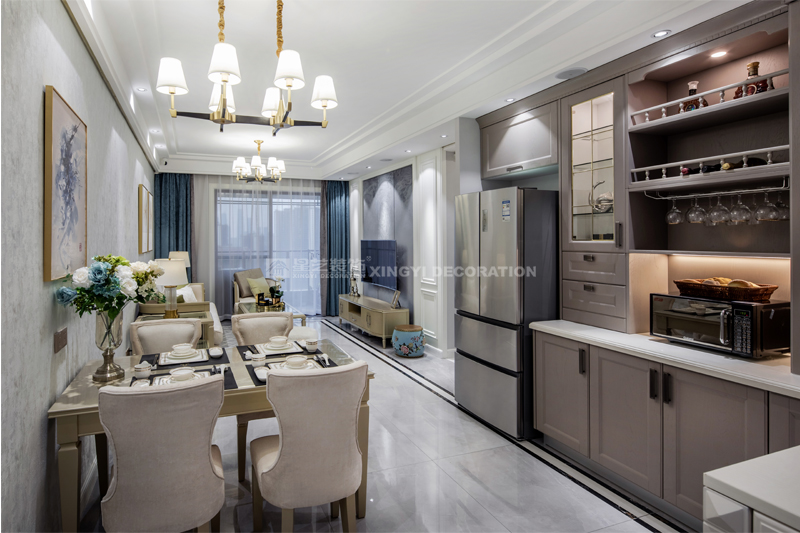 南寧星藝裝飾設(shè)計師專業(yè)設(shè)計的榮和悅瀾山89平美式輕奢裝修完工實景,這套作品是以美式輕奢風格為主,整個空間運用了淺灰白色色系作為基調(diào),簡潔的白色線條與淺灰色的櫥柜處理得十分得宜,兩者銜接自然,勾勒出整個空間通透的層次感,加上淺金色的燈具、畫飾和色澤內(nèi)斂的軟裝搭配,客餐廳的空間中極具張力的輕奢情調(diào)十分舒心,不難看出客戶對生活品質(zhì)有著非常高的要求。