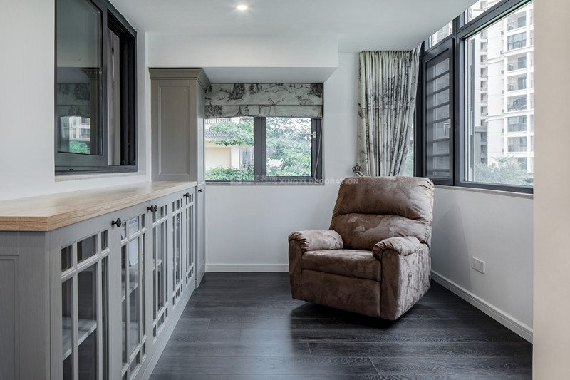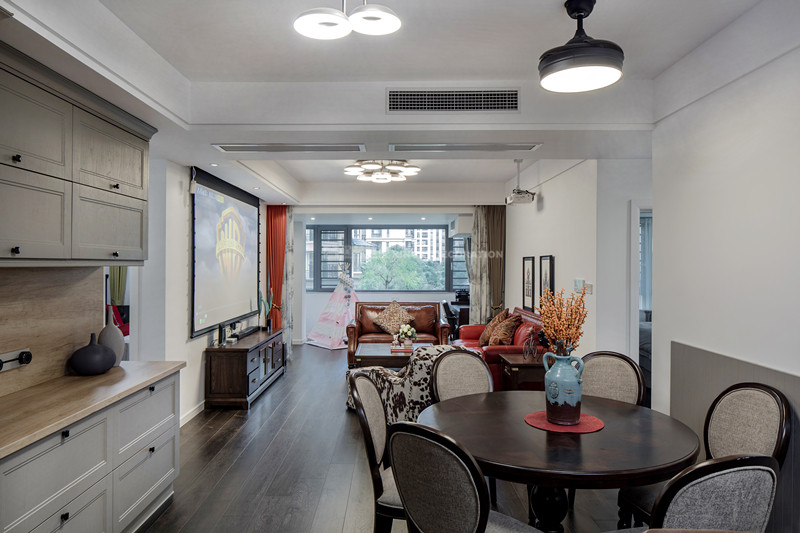 很多人對于家的定義,是都喜歡把家設(shè)計(jì)成自己喜歡的樣子,大到布局規(guī)劃,小到沙發(fā)擺飾,事無巨細(xì),一絲不茍;我所接待的這位業(yè)主也是如此,很多東西都是根據(jù)他所想要的然后慢慢呈現(xiàn),沙發(fā)、櫥柜、衛(wèi)浴等這些業(yè)主都有比較高的要求,也會(huì)有自己的堅(jiān)持,從設(shè)計(jì)到完工,再最后落地的效果,業(yè)主還是非常滿意的。本案并沒有過多的色彩去裝飾,也不拘于尋常電視機(jī)的設(shè)計(jì),以高級灰白為主,搭配業(yè)主精心挑選定制的收納柜、酒紅色沙發(fā)、窗簾、木地板以及擺飾等元素糅合起來,設(shè)計(jì)出自然質(zhì)樸、內(nèi)斂時(shí)尚的空間氛圍,讓人一如有時(shí)光的沉淀痕跡,醇意韻味十足。
