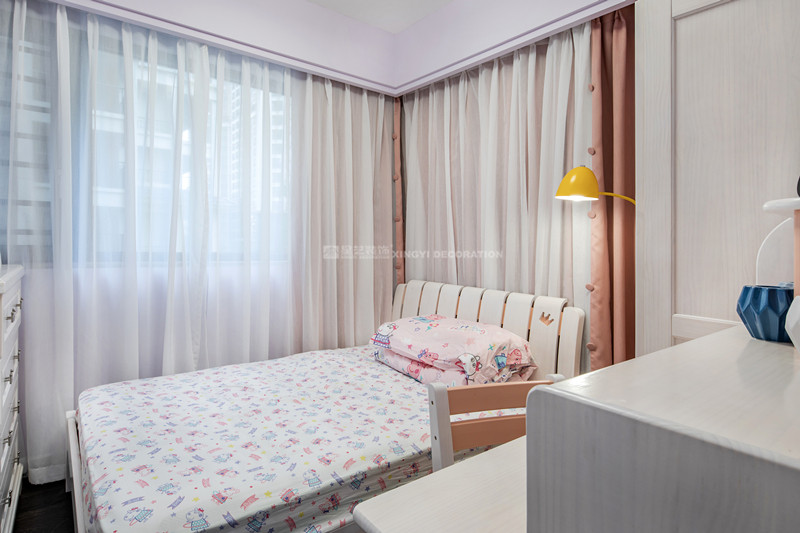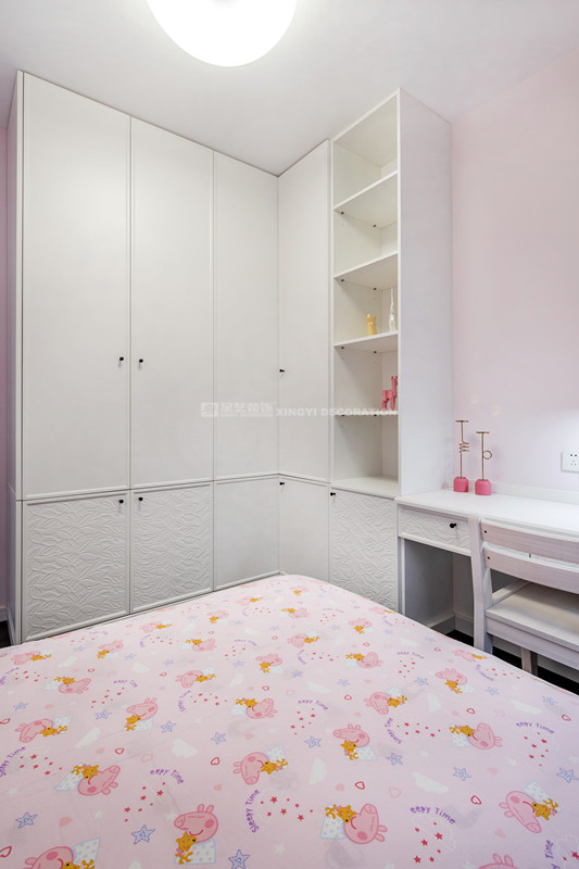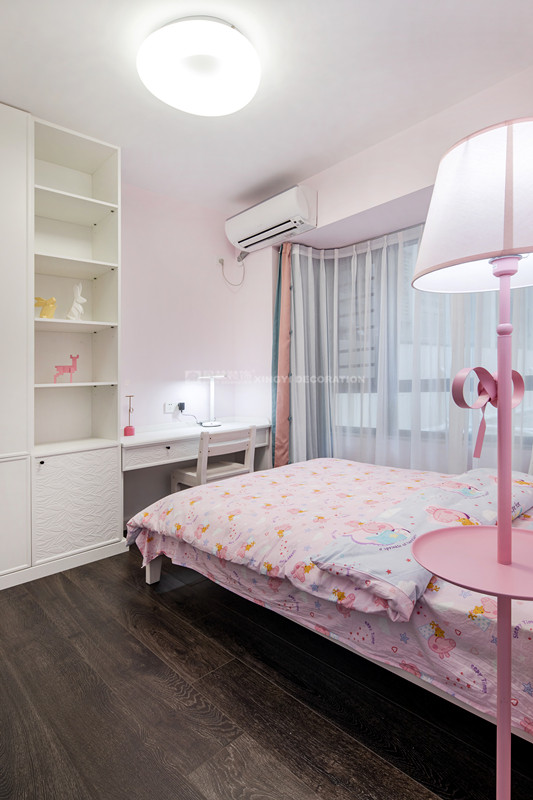 將休閑區(qū)打通,使得客廳愈加通透明亮之余,使得休閑區(qū)域空間更為寬敞明亮,小孩玩鬧,或大人靜坐思考、辦公,都不顯沉悶,一舉兩得。臥室的設(shè)計(jì)風(fēng)格各異,皆是因人制宜,或粉紅精巧、或古香古色;亦或簡潔自然;都足以見得設(shè)計(jì)師根據(jù)業(yè)主需求細(xì)心而作,美觀靜謐又不失實(shí)用,十分得宜。