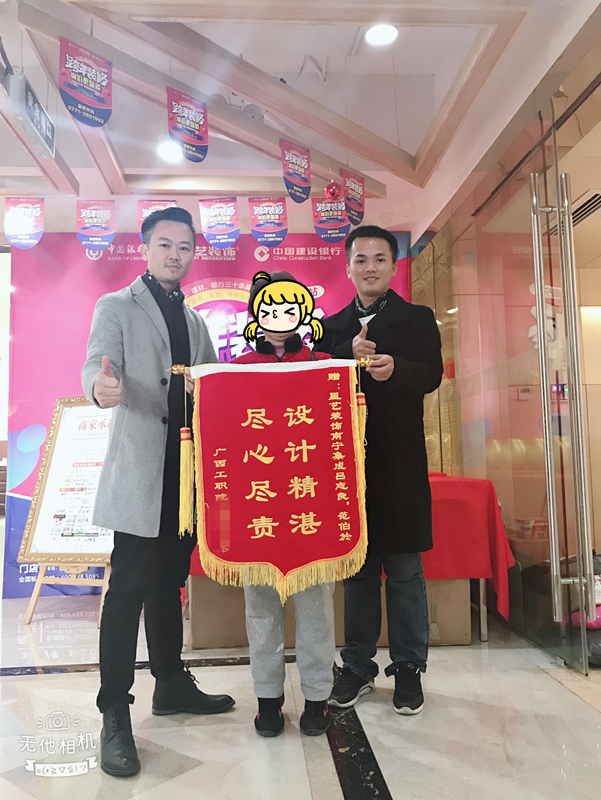 2018年12月22日,廣西工職院業(yè)主送來(lái)錦旗,稱贊設(shè)計(jì)師呂志良、范珀菸設(shè)計(jì)精湛,盡心盡責(zé);監(jiān)理謝為學(xué)、梁敬樂(lè)熱情周到,施工規(guī)范。