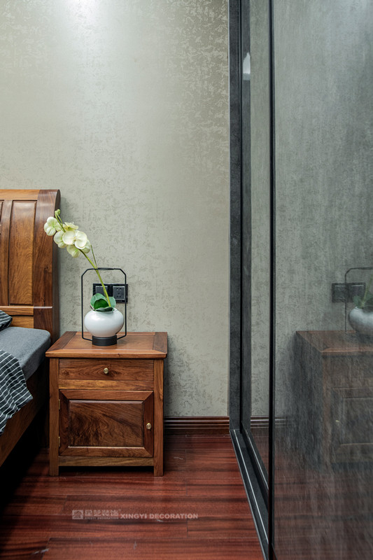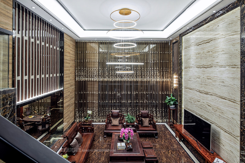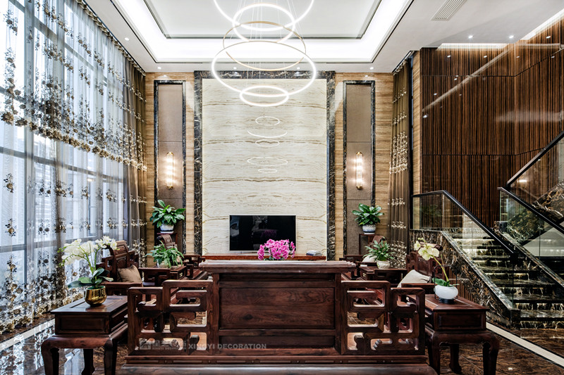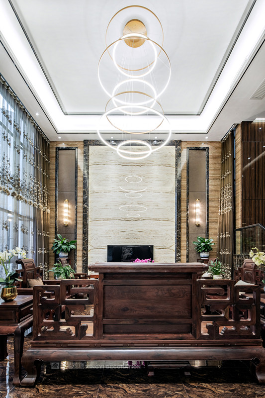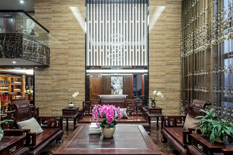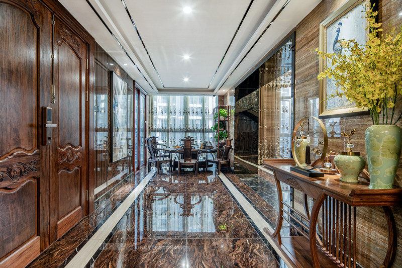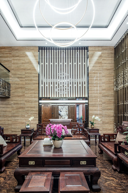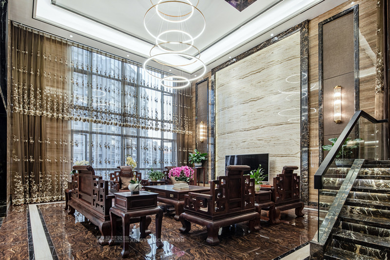 由于業(yè)主經(jīng)常外出旅游入住很多有品質(zhì)的酒店,希望設(shè)計(jì)的有酒店風(fēng)的新中式,因?yàn)橐藕芏嗉t木家具。