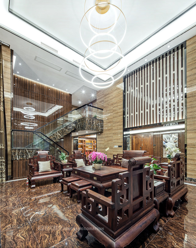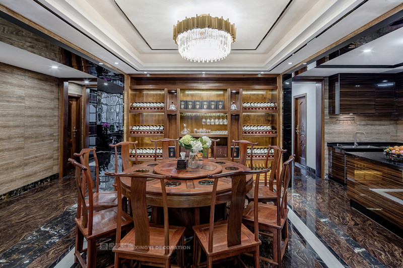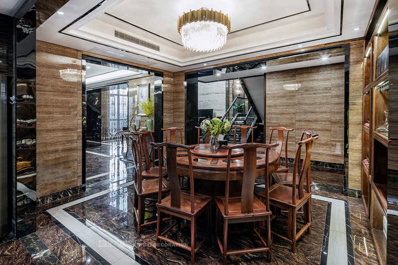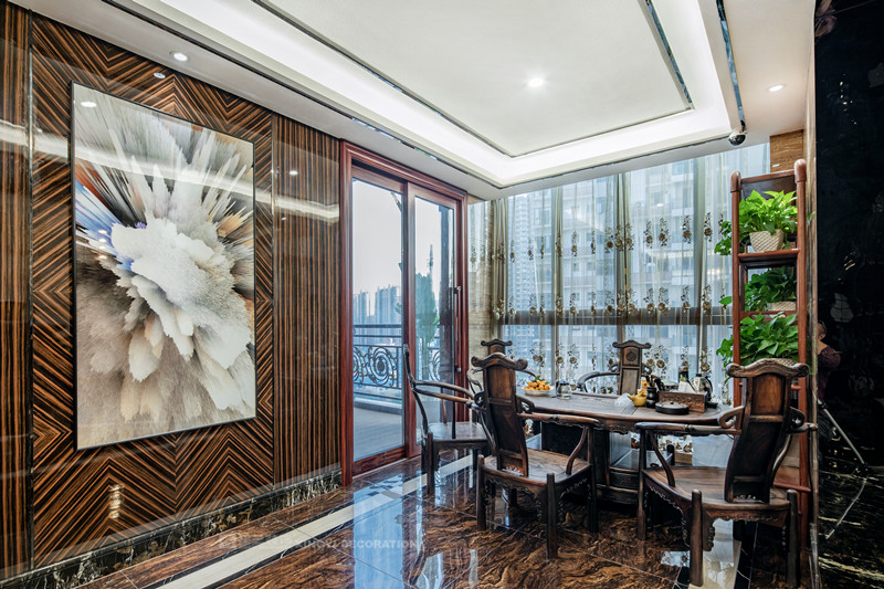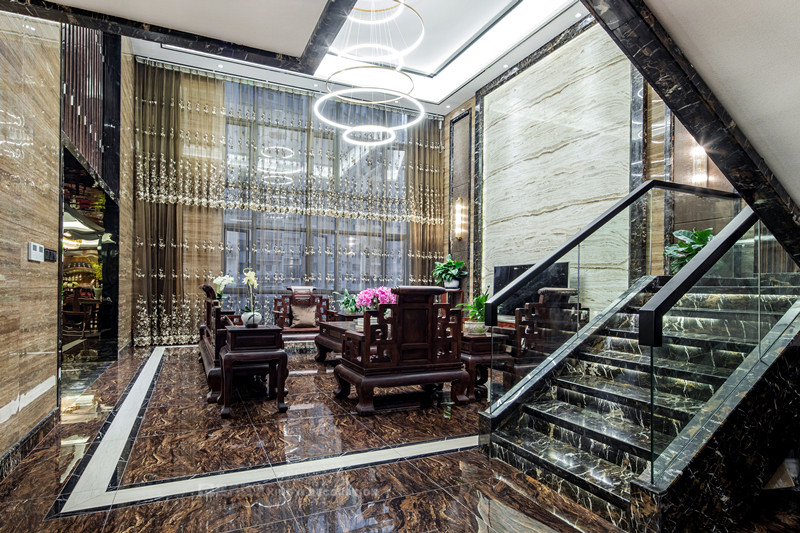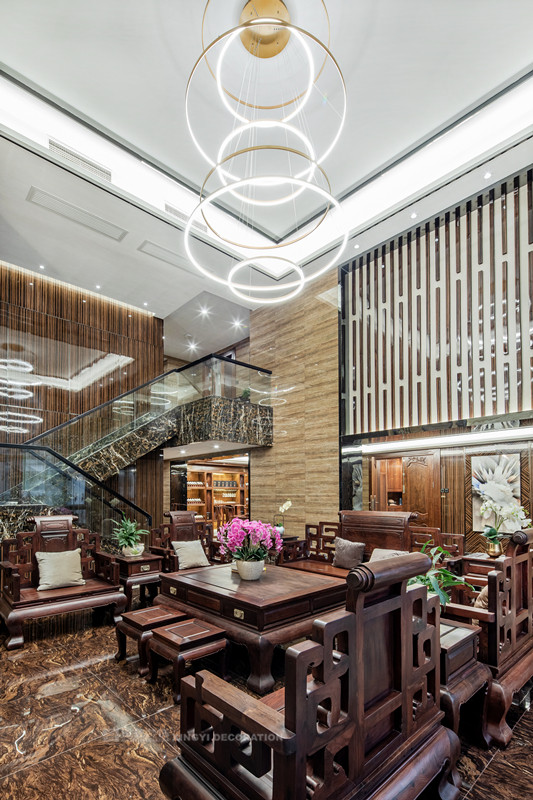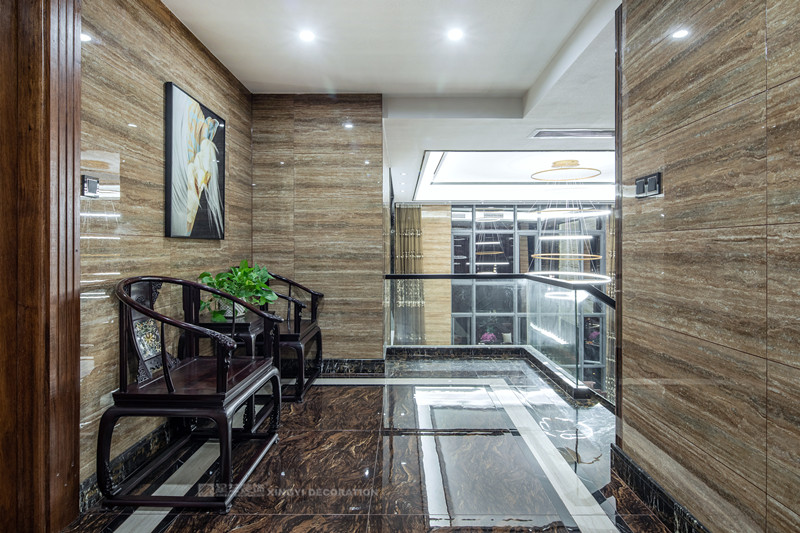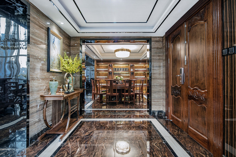 由于業(yè)主經(jīng)常外出旅游入住很多有品質(zhì)的酒店,希望設(shè)計(jì)的有酒店風(fēng)的新中式,因?yàn)橐藕芏嗉t木家具。