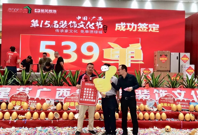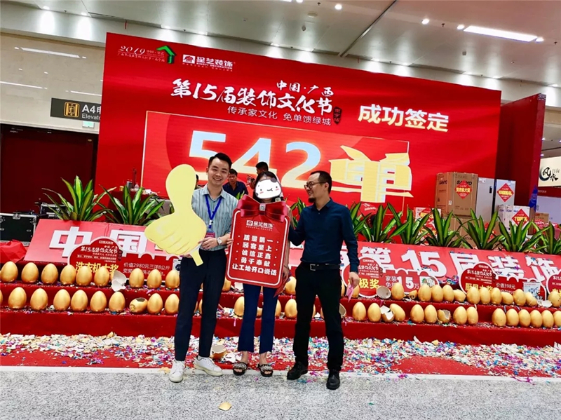 6月16日,隨著“15萬(wàn)免單大獎(jiǎng)”的塵埃落定,星藝裝飾第十五屆裝飾文化節(jié)(南寧站)于會(huì)展中心圓滿(mǎn)落下帷幕,在廣大客戶(hù)朋友、中行、農(nóng)行、建行以及五十余家材料商家的鼎力支持下,星藝南寧在本次活動(dòng)中成功獲得625位客戶(hù)的選擇,再次刷新了2018年第十四屆裝飾文化節(jié)的記錄,成績(jī)斐然,收獲滿(mǎn)滿(mǎn),又創(chuàng)下喜人的奇跡。