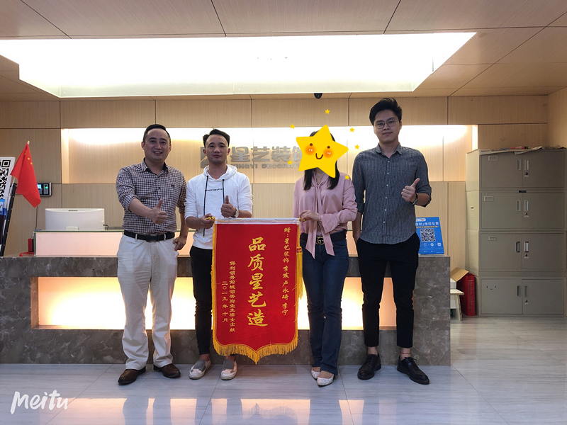 2019年10月25日,保利領秀前城的梁女士來到星藝裝飾集成整裝店面,親手贈予星藝盧永琦 李發(fā)設計師 項目經(jīng)理李寧表示感謝的錦旗,錦旗內容:品質星藝造