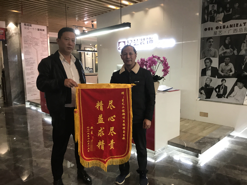 2019年12月24日,昌泰茗城的業(yè)主李先生來到星藝裝飾匯東店,親手贈予易生教項(xiàng)目經(jīng)理錦旗表示感謝