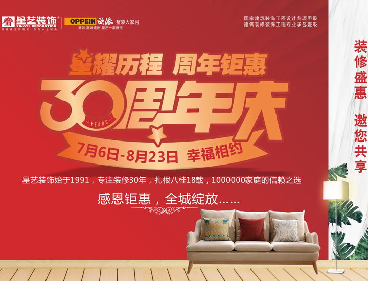 星耀歷程,周年鉅惠,星藝裝飾品牌30年,入駐南寧18周年感恩大行動