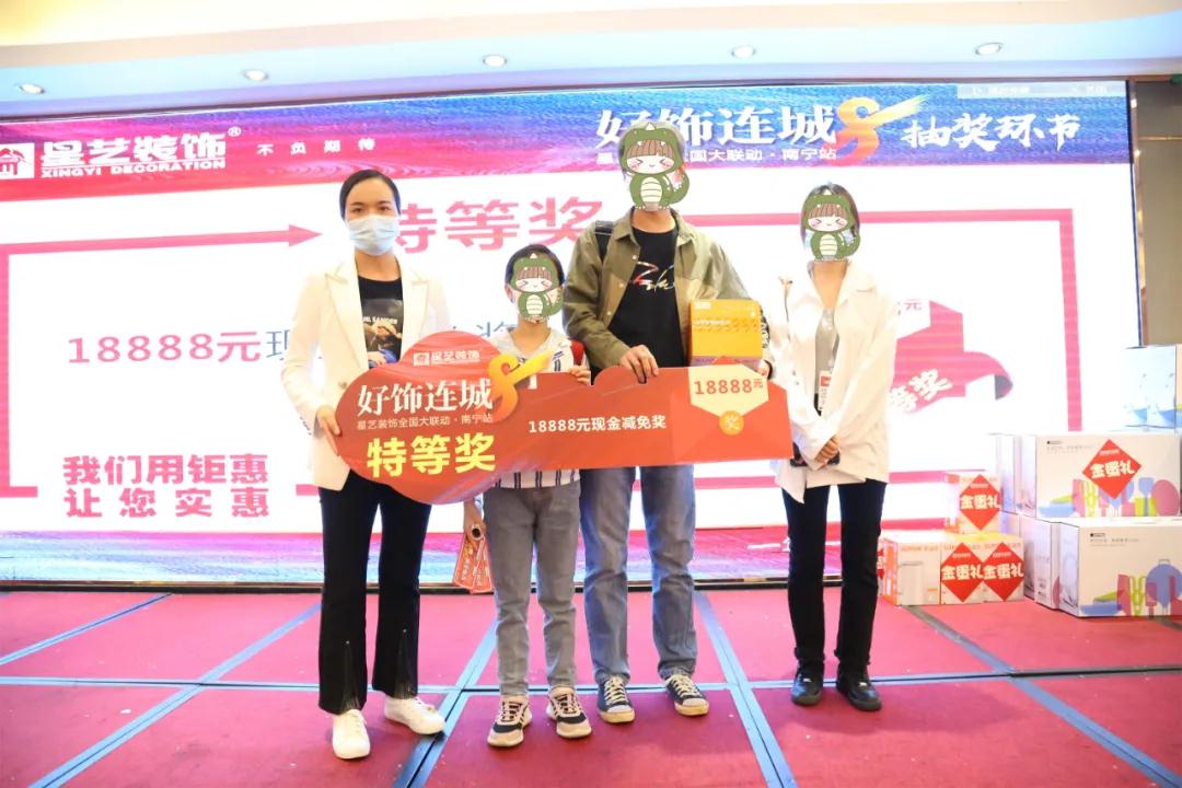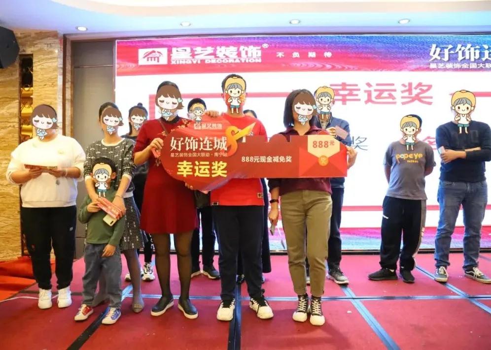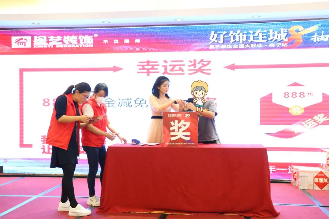 11月14日,隨著一名凱悅國際業(yè)主抽中了“好飾連城8(南寧站)”18888現(xiàn)金大獎,星藝裝飾全國480多城聯(lián)動的“好飾連城8”南寧站在南寧紅林大酒店三樓(廣林廳)圓滿落下帷幕。