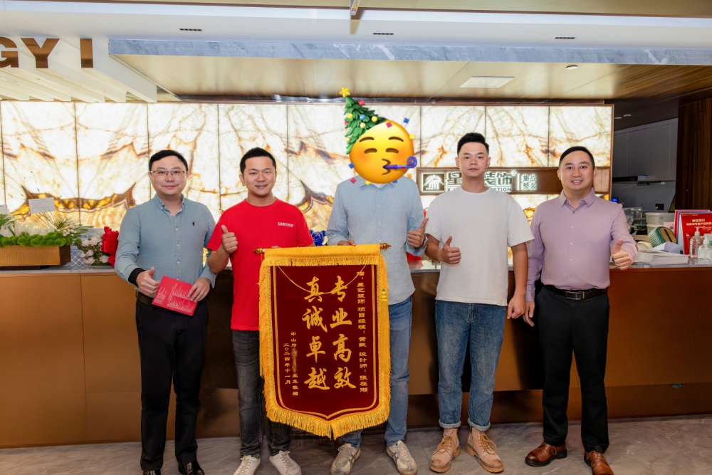 今日,南寧星藝裝飾集成整裝館迎來了一段溫馨而榮耀的時刻。華潤中山府小區(qū)的一位業(yè)主特地送來了一幅錦旗,以表彰我們團隊在裝修項目中的卓越表現(xiàn)。這幅錦旗上題寫著“真誠卓越 專業(yè)高效”,表達了業(yè)主對我們工作的高度認可和由衷感謝。設計師張在湘和項目經(jīng)理黃斌與業(yè)主共同合影留念,記錄下了這一珍貴的瞬間。