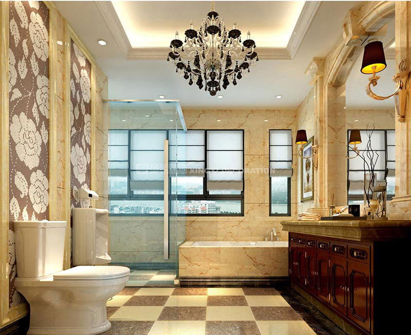 主要材料: 新西米黃大理石、微晶磚、進口墻布、銀鉑、美國紅橡木料