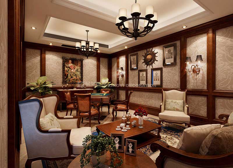 美式,通常出現(xiàn)在別墅或者是大戶型住宅空間中,此次,點(diǎn)廓將美式移植100平方米中小戶型公寓中,依然要將美式浪漫進(jìn)行到底。起居空間采用簡化了的美式線條造型墻板,與天棚的造型線框渾然一體,覆以純凈的白色,因此顯得更加明亮,結(jié)合金棕色墻紙的填空,格調(diào)端莊雅致。配合美式經(jīng)典家私及豐富雅致的擺件飾品,空間頗具內(nèi)涵與品位。地面為新西班牙米黃石材結(jié)合啡網(wǎng)紋波導(dǎo)線的拼花鋪貼,客廳與餐廳的功能區(qū)域點(diǎn)綴美式手工羊毛工藝塊毯,強(qiáng)調(diào)風(fēng)格的純正,又軟化了空間氛圍。鐵藝桌椅、石材壁爐、絨布美式沙發(fā)、手繪裝飾椅、鐵藝花臺(tái)、琳瑯滿目的擺件及盆栽,多種元素的混搭所營造的精致場(chǎng)景,仿佛置身好萊塢文藝片的唯美劇情中,欲罷不能……
