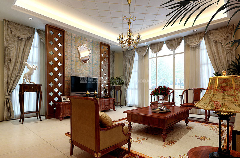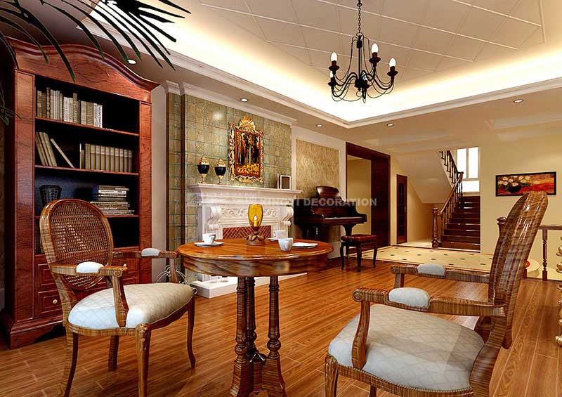 家具及軟裝陳設(shè)方面采用混搭的手法。明式圈椅與沉穩(wěn)的美式家具很好的融合在了一起。即滿足了客戶對美式田園生活的向往,又傳承了中國的傳統(tǒng)文化。