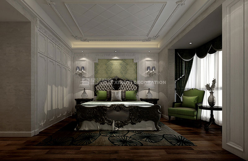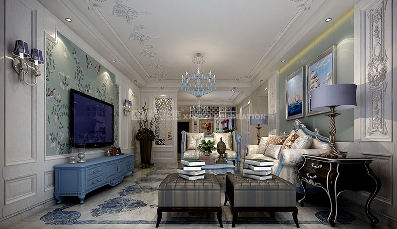 色彩運(yùn)用大膽,提倡多樣化和多元化,咖啡、黑、白、藍(lán)、等位主色調(diào),配以石材、有色木材、皮草、絲絨等材質(zhì),前衛(wèi)元素的提取和表達(dá),力圖創(chuàng)造出浪漫、感性、冷艷的空間質(zhì)感。