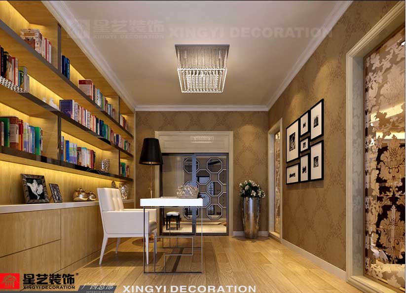 鳳嶺春天198平裝修案例設(shè)計說明:該案中,整體空間以白色為基調(diào),渲染出一個純凈的古典空間氛圍。在材質(zhì)的選擇上,我們大量運用白色飾面和咔色的絨布為電視墻的主材,以白色的石材和灰鏡造型點綴出極具觀賞性的藝術(shù)造型。藝術(shù)品的運用也是空間裝飾的重要元素之一。在整體空間的布局上,以大空間的劃分為主,將原來的一個臥室改成通透的書房,縮短書房的尺寸,讓過道更寬敞,還有延伸陽臺做主臥的空間,使整個戶型的空間關(guān)系變得緊湊,大氣。各個空間都有獨特的藝術(shù)元素。