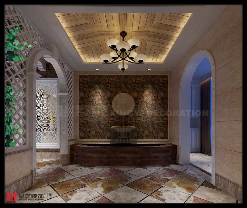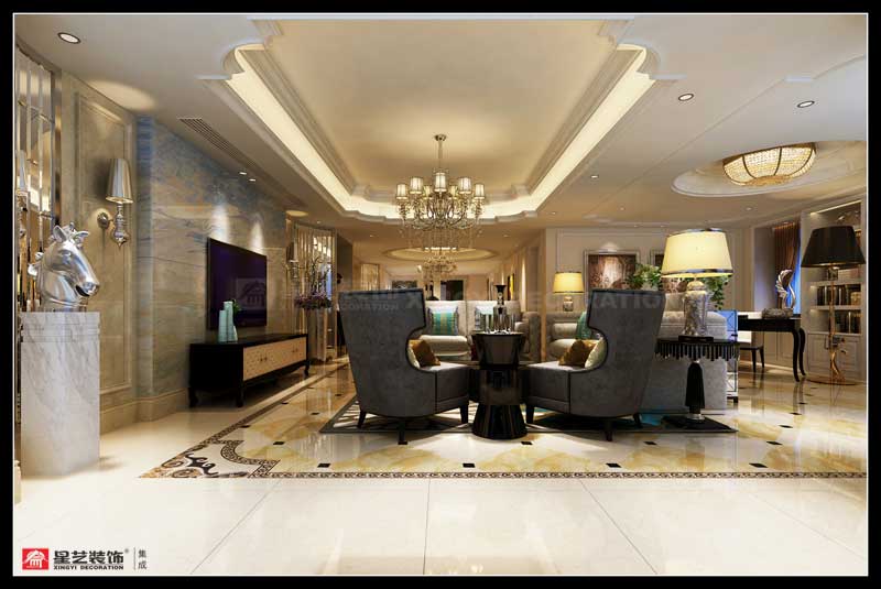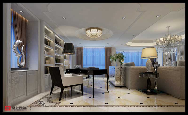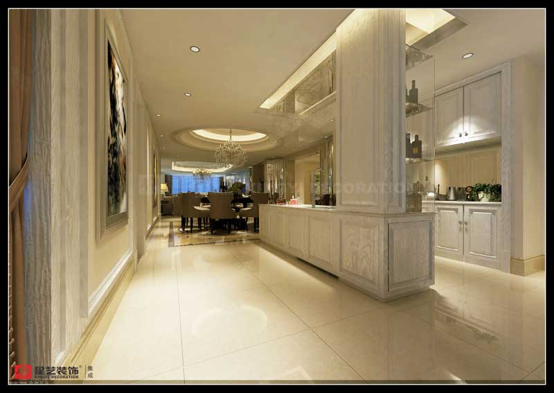 本案試圖尋求一種建筑與室內(nèi)融合并處的思想理念。接受了西方文化的審美表象,和傳統(tǒng)深處不可磨滅的意識相交雜,也是部分業(yè)主心里真實的反映??臻g的立面處理,強調(diào)的對稱平衡,穿透和最大限度的引入室外的自然園林,入戶門廳的意韻設(shè)計,都前后連貫。寬敞的室內(nèi)為我們展示的是西方文化的景象,各種簡意的雕塑和掛畫,既展示出了主人的收藏和品味,又在室內(nèi)陳設(shè)中形成多重構(gòu)圖,讓人從每一個角度望去都賞心悅目。每一個空間,設(shè)計師都把西方文化的格調(diào)攪拌得均勻入味,客廳背景更是別有一番韻味,海納百川與窗外的南湖景相呼應(yīng),和簡潔的沙發(fā)床藝一同譜寫出悠然雅致的歐式風(fēng)情。