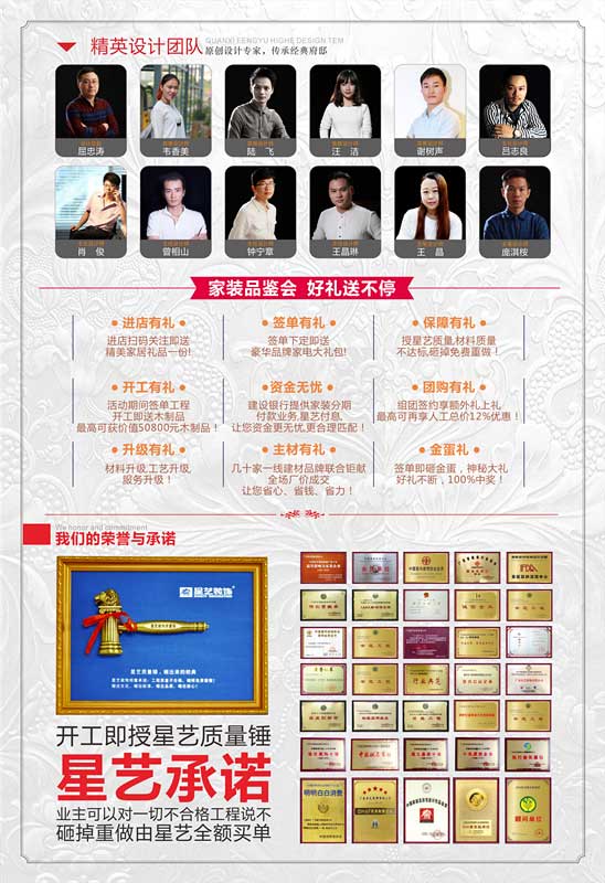 、全城征集0利潤新樓盤樣板房2套:折扣按照簽訂合同的工程造價(jià)計(jì)算,不享受其他優(yōu)惠政策,管理費(fèi)、運(yùn)雜費(fèi)、設(shè)計(jì)費(fèi)按原合同標(biāo)準(zhǔn)報(bào)價(jià)收取,被征集樣板房工程造價(jià)不得低于10萬元,完工后可供星藝裝飾客戶參觀5次,設(shè)計(jì)師拍攝;(注:樣板房工程由資深設(shè)計(jì)師團(tuán)隊(duì)+優(yōu)秀項(xiàng)目經(jīng)理+金牌施工隊(duì)伍+總經(jīng)理親自監(jiān)督)。