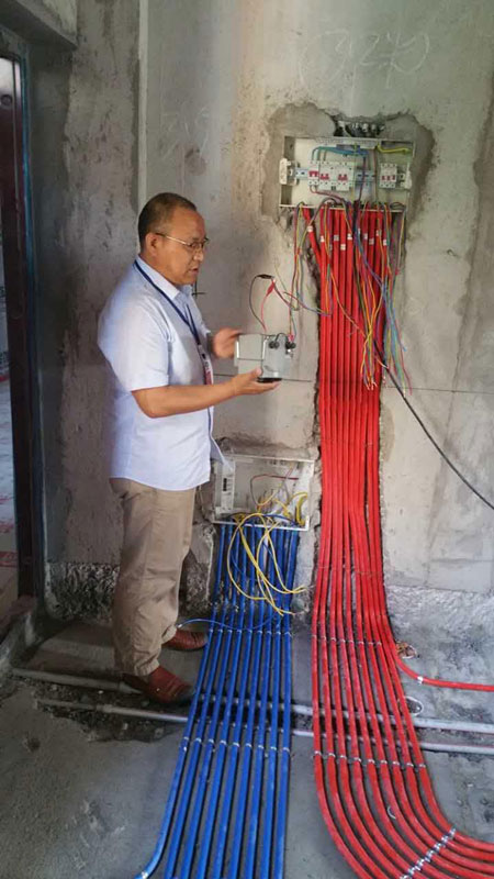 水電工程完工后,項(xiàng)目經(jīng)理與工人做好自檢工作,