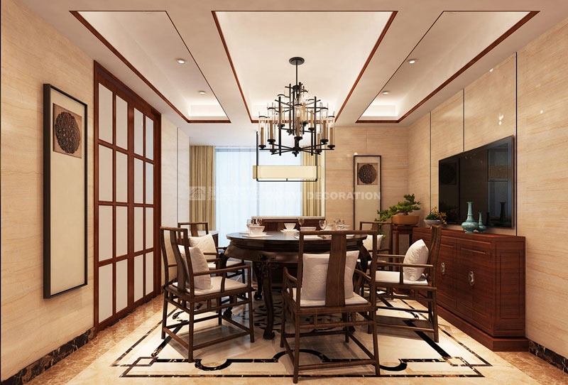 華發(fā)國(guó)賓一號(hào)240平現(xiàn)代中式裝修案例