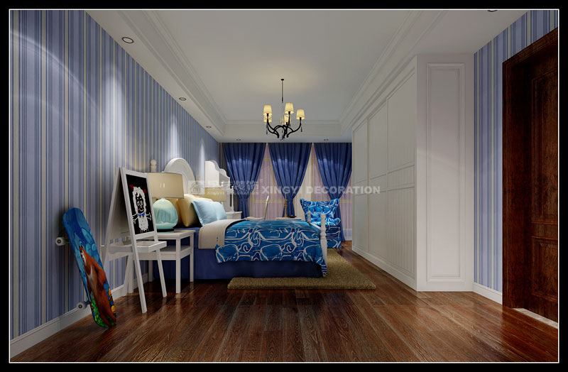 在色彩以及風(fēng)格設(shè)計方面,設(shè)計融合了業(yè)主方提出的西方美學(xué)思想和結(jié)合他的生活理念方向進(jìn)行設(shè)計,主要為溫馨的黃色加配上賞心愉目藍(lán)色為主調(diào),為整個空間增添了豐富的視覺效果。