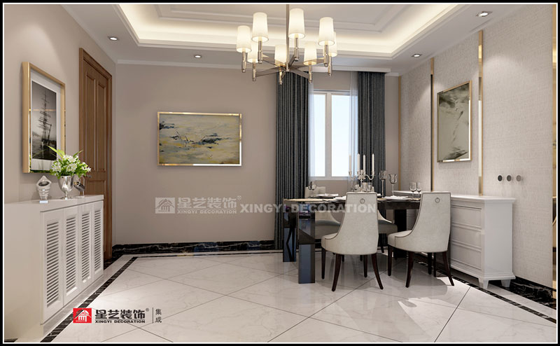 家是舒適與美好,是我們內(nèi)心的需求與向往,它絕非靠貴重的東西任意堆砌,它需要的是來自生活的想象,及最本質(zhì)的追求。本案是一對(duì)年輕夫婦的私宅,所以在色彩關(guān)系中,設(shè)計(jì)師采用灰色與金色來奠定基礎(chǔ),通過創(chuàng)新的設(shè)計(jì)手法,優(yōu)化空間,為整個(gè)空間增添了獨(dú)特的魅力。整個(gè)客餐廳采用開放式設(shè)計(jì),為房間提供開闊視野的同時(shí),也將空間最完美的狀態(tài)保留了下來。為了凸顯空間的區(qū)域性,我們?cè)陧斆媸褂昧硕ㄖ频木€條,使得空間上下富有層次,不同區(qū)域也得以劃分。