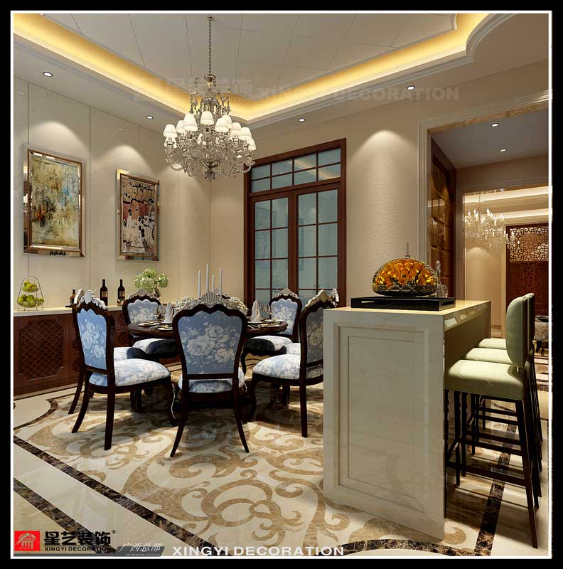 普羅旺斯藍鉆墅300平美式風格裝修設計說明