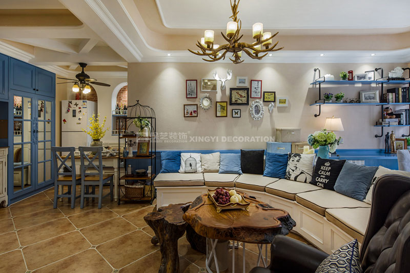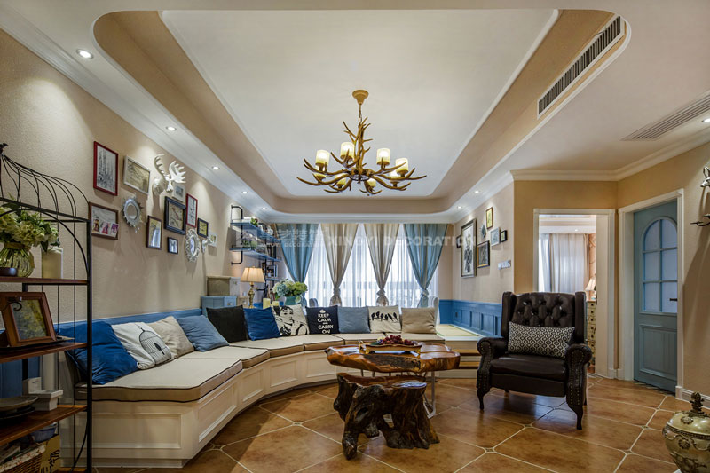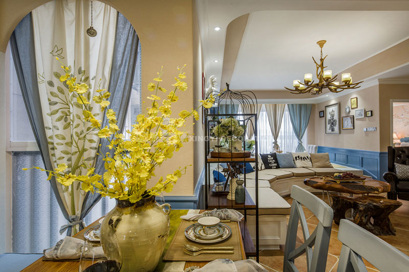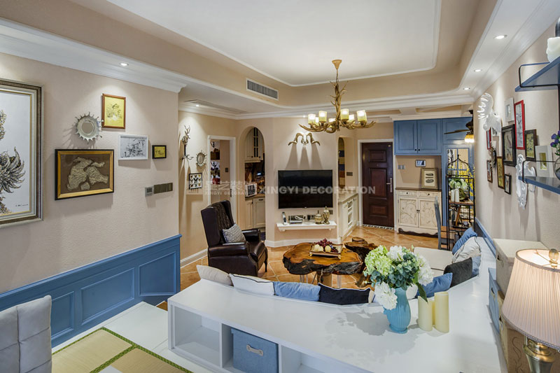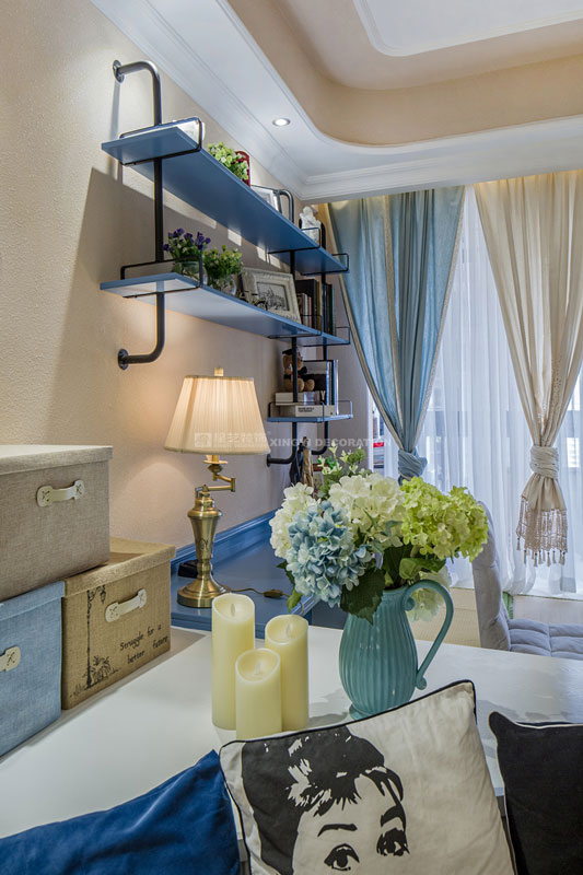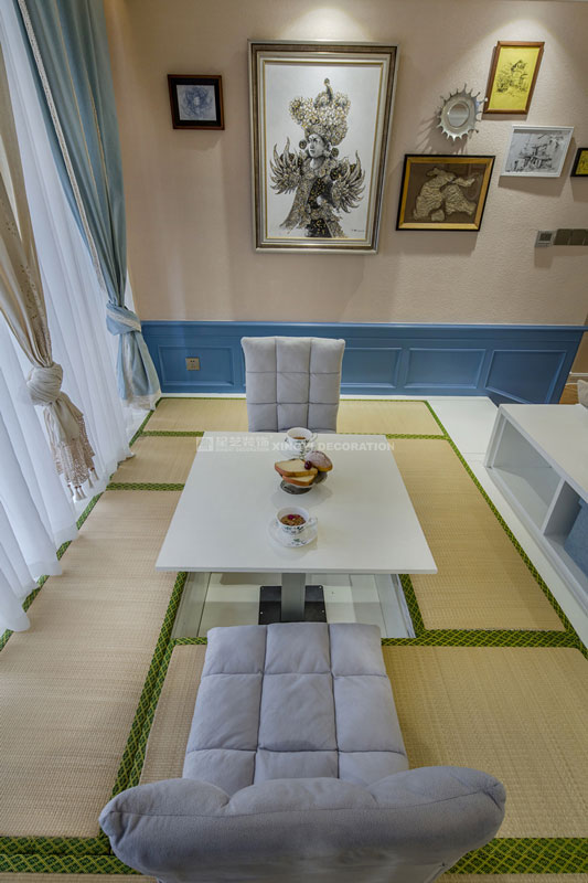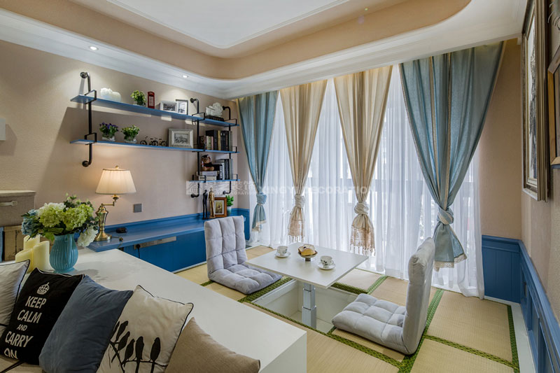六月里,天是藍的,樹是綠的,空氣是熱的,冷飲是涼的,陽光是充足的,生活是快樂的。靜靜的坐在榻榻米上溫一壺花茶,與友人談天說地。不經(jīng)多加修飾的保留老物件根藝做茶幾,讓家更顯自然。置身其中仿佛時光能倒流,生活似乎也慢下來。臥室花鳥圖搭配藍色軟包美麗卻不繁瑣。所有沙發(fā)及書房區(qū)域下邊都設(shè)計強大的儲物功能來滿足小戶型對收納需求?!緦嵕鞍咐龢s獲2017年德高星藝杯設(shè)計大賽工程實景作品提名獎
