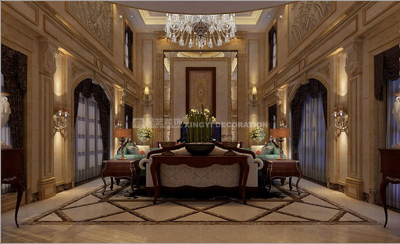 楓林藍岸600平裝修案例說明:該案是個舊房改造的別墅,因原結(jié)構(gòu)在使用過程有諸多的不方便及原有裝修的缺陷,我們將戶型重新做了合理的空間布局,改造使得空間的序列完整。經(jīng)過調(diào)整,把原有二樓戶外回廊納入整個大廳空間里面,使整個大廳更顯豪華大氣。該案傳遞一種低調(diào)奢華的生活方式,既有歐式生活的貴氣與精致,又無金碧輝煌的浮華。整個大宅的設(shè)計理念是奢華主義與現(xiàn)代浪漫主義的完美結(jié)合。流線形與直線相互搭配,現(xiàn)代而奢華的家具精美華麗,明亮的色彩相互交錯。所有豪華的家飾,個性的墻紙相互呼應(yīng),此情此景充斥著浪漫的誘惑力,表現(xiàn)出王者的風范。