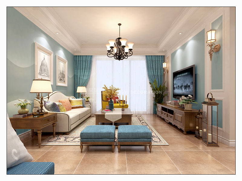 本案設(shè)計以美式休閑風(fēng)為主,設(shè)計師對色彩的運(yùn)用極為嫻熟精深,一去傳統(tǒng)美式厚重古板的色調(diào),以明亮輕快的色彩搭配,使得空間更具靈動氣息,既精致又不失溫馨。