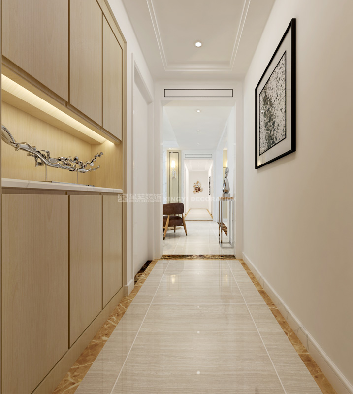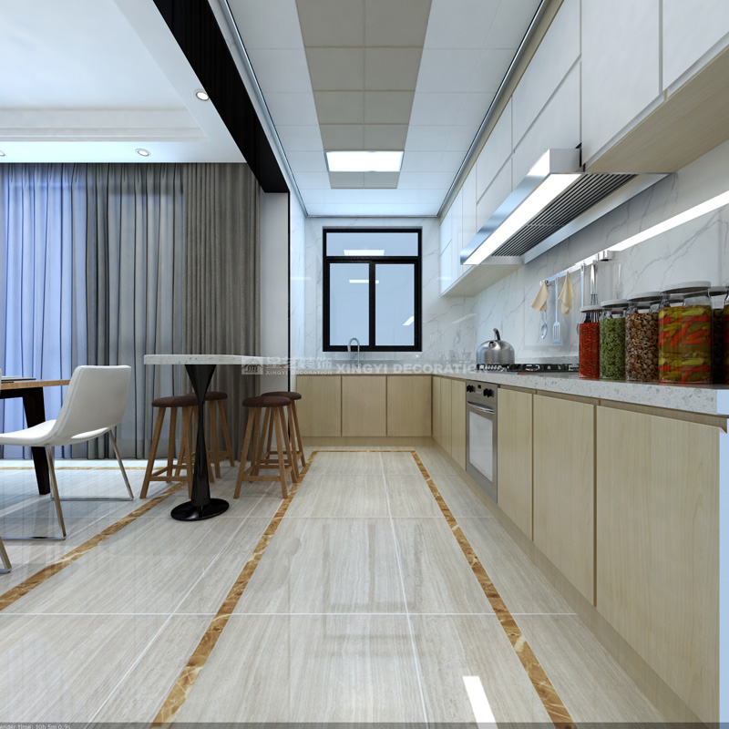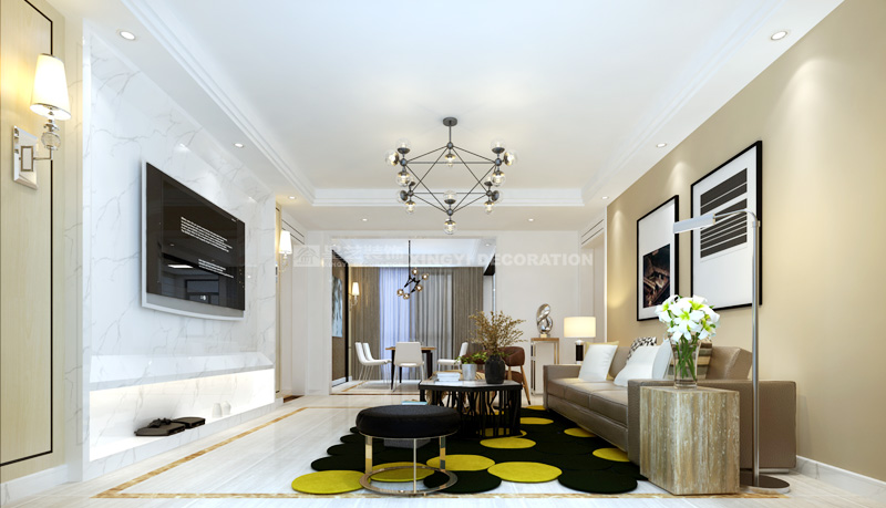 隨著都市面貌的日益更新,時(shí)尚名品充滿人們的視野,越來越多新興的精英人群,追求時(shí)尚生活的唯美男女,已通過他們前衛(wèi)的思想,優(yōu)雅的舉止,不浮夸不媚俗,用一種理性睿智又不失激情的生活態(tài)度詮釋著都市風(fēng)的定義。此設(shè)計(jì)亦先從理性展開,客餐廳融在一個(gè)較為方正的空間里,視覺開敞明亮,通過地面材質(zhì)的劃分來界定各空間并達(dá)到視覺延展。配色上,大地色的沙發(fā)與木飾,與爵士白石材相互映襯,賦予空間優(yōu)雅含蓄的氣質(zhì)。粗細(xì)有致,克制應(yīng)用的金屬線條,通過豎橫有序的伸展,“構(gòu)成”出藝術(shù)品味。木和石材的寬窄分割與斜向鋪陳,“不羈”出與眾不同。