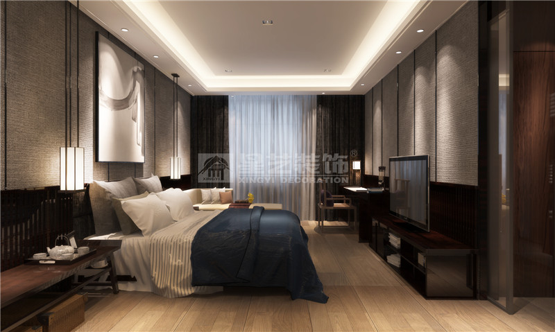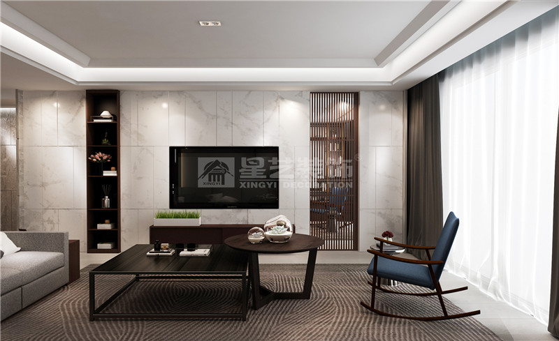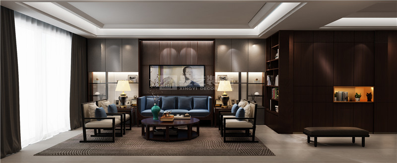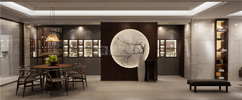 本案的業(yè)主我個(gè)人非常崇拜他,做事情認(rèn)真執(zhí)著,旅游的時(shí)候收藏了很多茶壺,喜歡簡(jiǎn)約中式家具但又不喜歡繁瑣的裝飾,希望通過(guò)簡(jiǎn)約的裝飾把他的收藏和家具能夠融入進(jìn)去。我通過(guò)對(duì)展示柜的獨(dú)特設(shè)計(jì)和中式元素的一些精簡(jiǎn)提煉,讓整個(gè)設(shè)計(jì)保留中式文化的獨(dú)特韻味同時(shí)又有簡(jiǎn)約大氣的視覺沖擊!