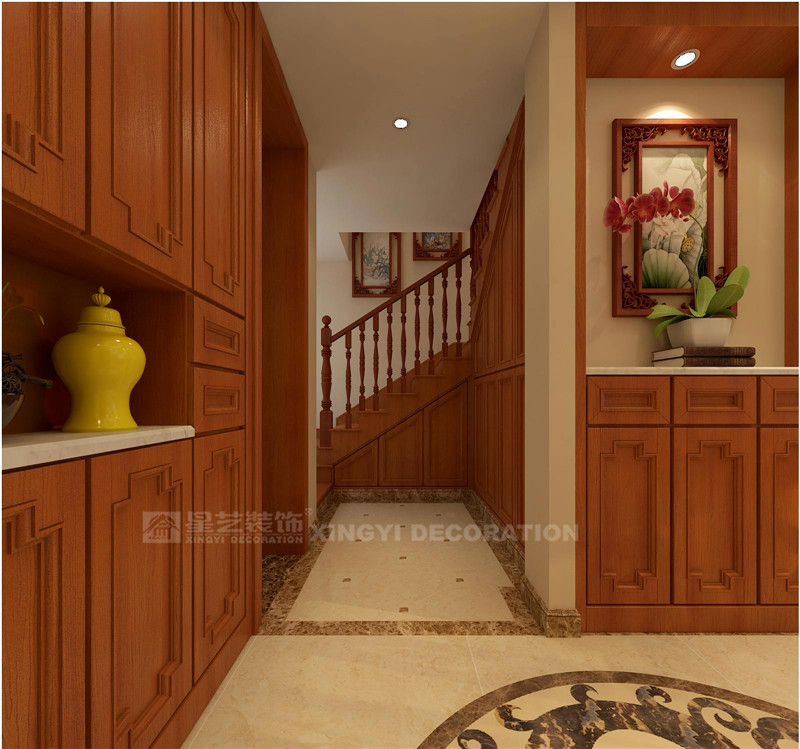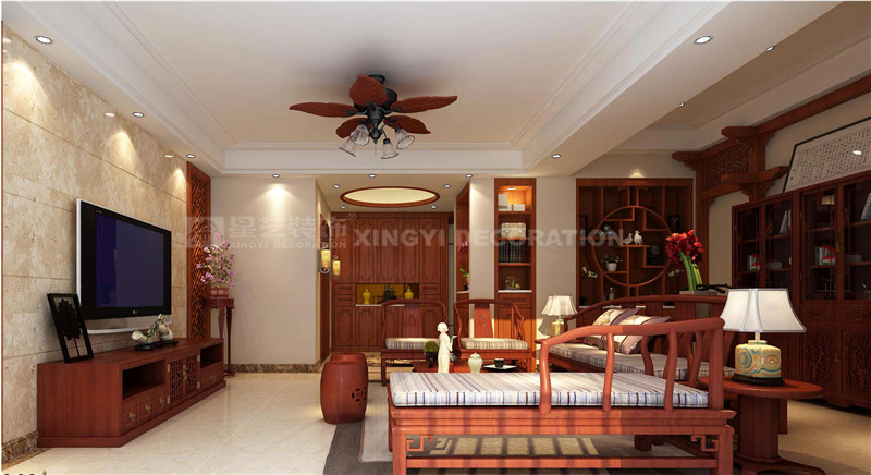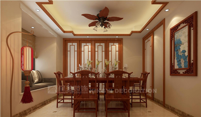 設(shè)計(jì)師在選材上也頗費(fèi)心思,入戶玄關(guān)的精美地面拼花、電視背景墻的卡布其諾大理石、穩(wěn)重的進(jìn)口泰柚木、典雅素美的中式壁紙以及留白簡化了的吊頂設(shè)計(jì),即明確了空間的基調(diào),又不顯得呆板沉悶。設(shè)計(jì)師用現(xiàn)代的材料營造著中式古韻,用現(xiàn)代的設(shè)計(jì)思路來處理每一種元素和符號,用現(xiàn)代的設(shè)計(jì)語言來表達(dá)對中國文化的理解與感受。