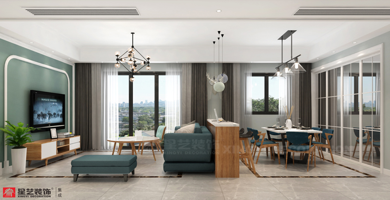 本套設(shè)計(jì)里帶著點(diǎn)森林的氣息,充滿著生機(jī)氛圍,色彩明麗。干凈利落的現(xiàn)代設(shè)計(jì)處理手法,客廳沙發(fā)在顏色上的選擇相對(duì)沉穩(wěn),也較為符合業(yè)主的性格