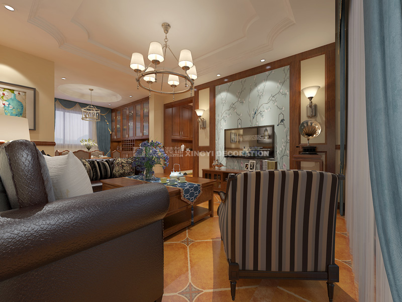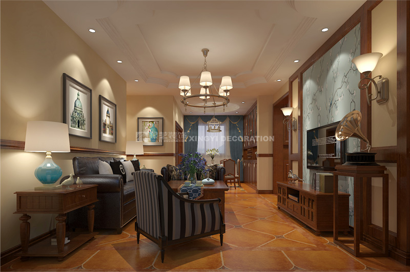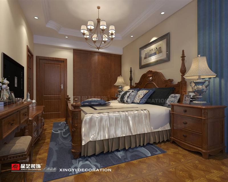 南寧星藝裝飾甘盧華設(shè)計師專業(yè)設(shè)計的榮和千千樹109平美式風(fēng)格裝修案例