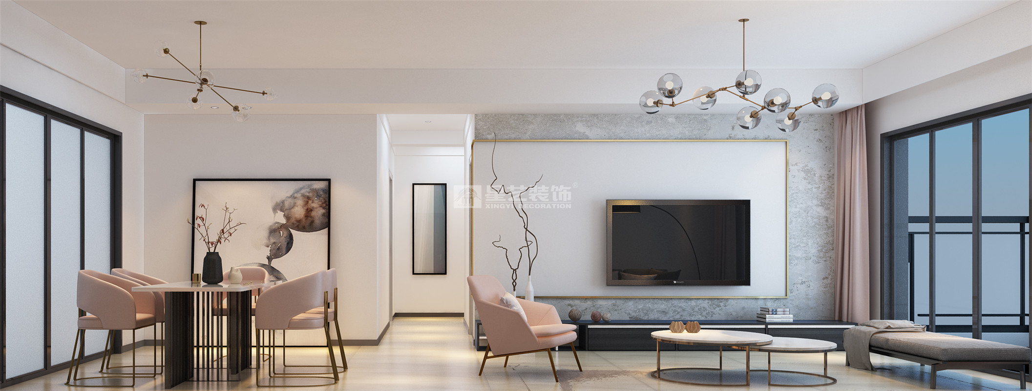 南寧星藝裝飾設(shè)計(jì)師專業(yè)設(shè)計(jì)的榮和悅瀾山144平現(xiàn)代簡約裝修案例,女業(yè)主對設(shè)計(jì)有一定要求,審美度相對較高,喜歡的的風(fēng)格相對極端,要么是絢麗多彩的,要么是簡約大氣的??紤]到是居家空間,講究實(shí)用與舒適,從而最后確定采用灰色與粉色為主調(diào)。整個(gè)空間以大色塊的方式進(jìn)行裝飾,沒有過多零碎的造型,以大面積裝飾為主,收口位置搭配女業(yè)主喜歡的金屬線條感,在大氣中增加輕奢感。主臥以藕粉、灰粉為主調(diào),采用硅藻泥床頭背景做出凹凸立體感,既保持了整個(gè)空間大面積色塊感,也豐富了層次。