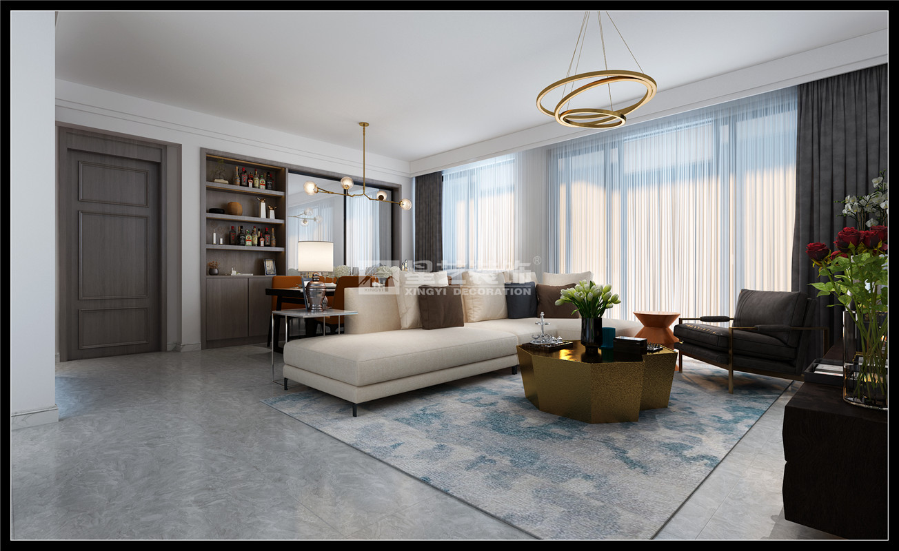 南寧星藝裝飾蘭瑞嚴(yán)設(shè)計師專業(yè)設(shè)計的保利領(lǐng)秀前城123平現(xiàn)代簡約裝修案例