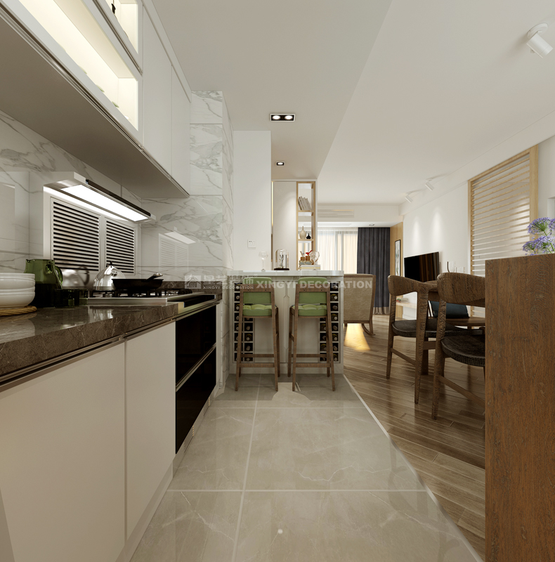 南寧星藝裝飾拜倩設(shè)計師專業(yè)設(shè)計的華潤二十四城110平現(xiàn)代北歐裝修案例,此工程項目為三房二廳二衛(wèi)一廚的多層住宅.室內(nèi)使用面積為90. m2. 交通方便,環(huán)境優(yōu)美,業(yè)主為一電氣工程師,夫妻兩人,女主人喜歡做瑜伽,烹飪,希望新家的設(shè)計中餐廳做開放式廚房,用餐做飯的時候增加全家的互動。