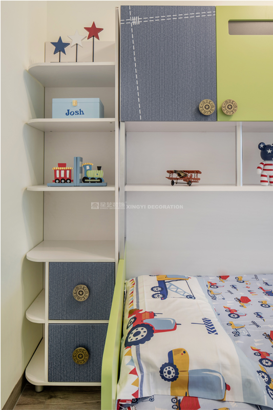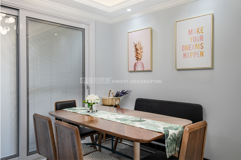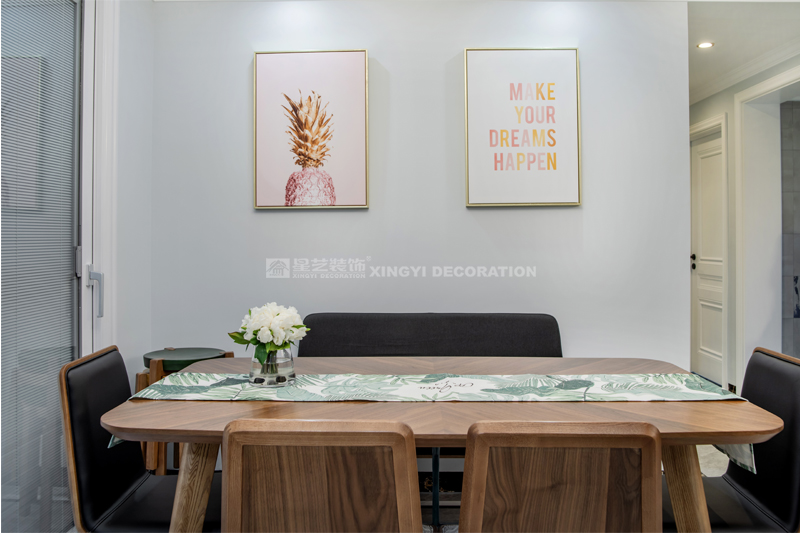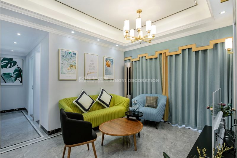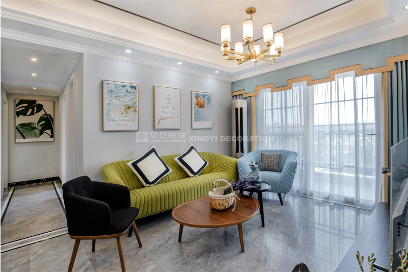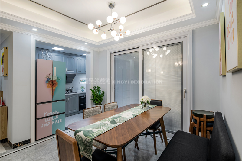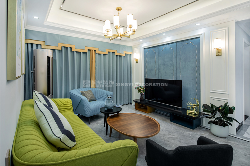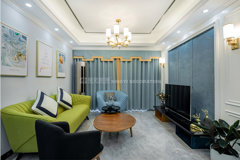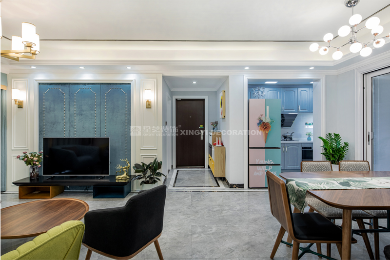 南寧星藝裝飾程文芳、曾相山設(shè)計(jì)師專業(yè)設(shè)計(jì)的嘉和城白鷺中州98平現(xiàn)代美式完工實(shí)景作品,現(xiàn)代美式風(fēng)格是時(shí)代發(fā)展趨勢(shì)的產(chǎn)物,指的是色彩相對(duì)傳統(tǒng)美式更加豐富多彩,空間風(fēng)格更顯年輕化和多元化,家具選擇更有包容性和鮮明性。所以設(shè)計(jì)師在聽完業(yè)主的需求后,便提議出將她房子設(shè)計(jì)成現(xiàn)代美式,既符合她年輕時(shí)尚的個(gè)性,又能滿足業(yè)主接待朋友時(shí),所需要的高品質(zhì)情調(diào),實(shí)用美觀,十分得宜。是以兩人一拍即合,從設(shè)計(jì)到落地實(shí)景,都花費(fèi)了許多精力和時(shí)間;正因?yàn)槿绱?,才有后期近乎完美的空間實(shí)景??蛷d的主色調(diào)以純白色為主,用大塊藍(lán)色的電視背景墻和窗簾將空間勾勒出不一樣的層次感,搭配設(shè)計(jì)感十足的燈具、精心淘來(lái)的擺飾和綠色的布藝沙發(fā)、淺色抱枕等,都為房間增添幾份靈動(dòng)的氣息。在餐廳和廚房的設(shè)計(jì)上,設(shè)計(jì)師為了讓空間看上去更寬敞明亮,將兩者間的空間色彩轉(zhuǎn)接極為自然,無(wú)論是細(xì)心裝飾的冰箱還是簡(jiǎn)約的桌椅,都足以讓人感受到不一樣的品質(zhì),十分難得。臥室因人制宜,大人房色彩搭配簡(jiǎn)約明快,小孩房精致有趣,摻入許多可愛擺飾的元素點(diǎn)綴,小清新中亦不失童真,猶如讓人入眠時(shí)置身童話世界一般。