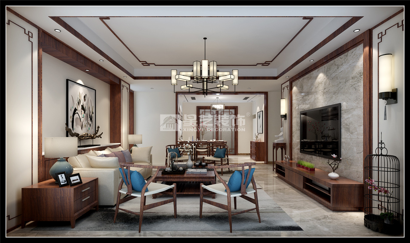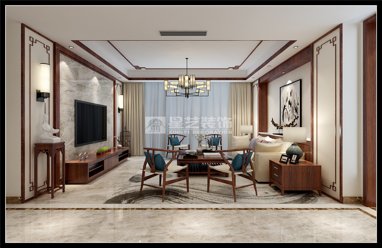 南寧星藝裝飾郝建勛設計師專業(yè)設計的賓陽鳳凰印象160平新中式裝修案例