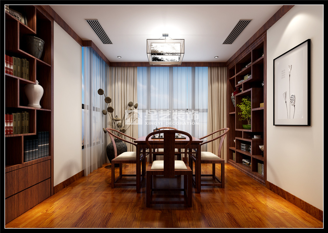 南寧星藝裝飾郝建勛設(shè)計(jì)師專業(yè)設(shè)計(jì)的龍灘單位房140平新中式裝修案例
