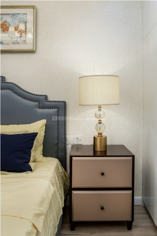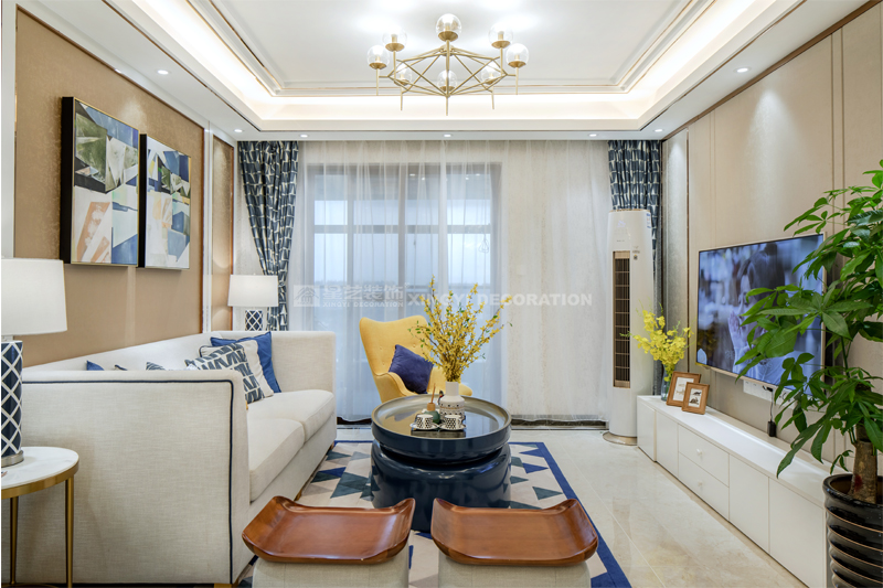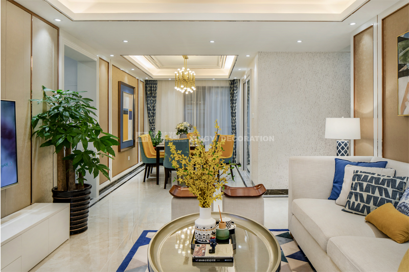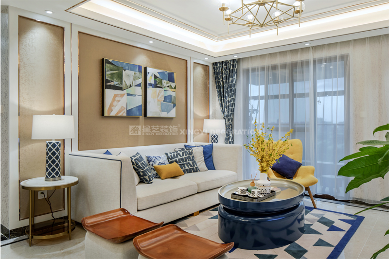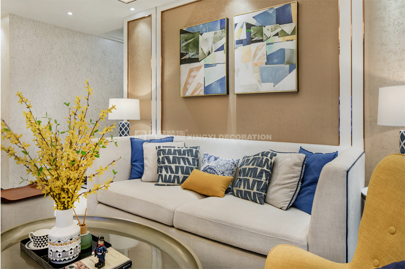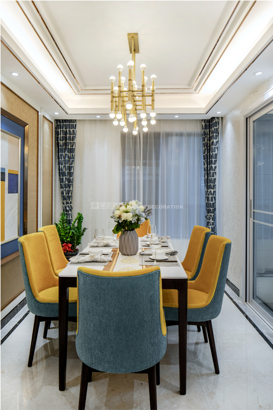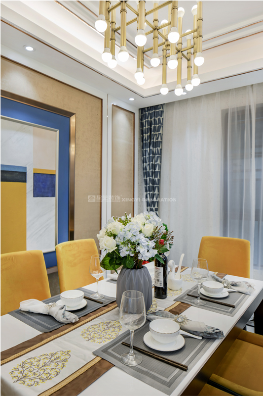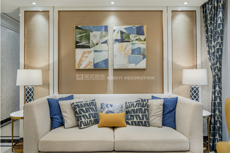 南寧星藝裝飾陶佳彤設(shè)計(jì)師專業(yè)設(shè)計(jì)的榮和悅瀾山109平后現(xiàn)代裝修完工實(shí)景案例,本案位于長(zhǎng)虹路。業(yè)主是一對(duì)新婚小夫妻,剛開始接觸的時(shí)候,這個(gè)美女業(yè)主也是做設(shè)計(jì)的。對(duì)于設(shè)計(jì)的思路是很明確。所以我們整個(gè)房子的定調(diào)是后現(xiàn)代輕奢。整個(gè)房子以白色為基調(diào),電視背景墻用的是淺咖啡的軟包加玫瑰金做一個(gè)線條的分割呈現(xiàn)。沙發(fā)背景和餐廳背景主色調(diào)用淺咖啡色藝術(shù)紋理涂料主打,側(cè)邊用護(hù)墻板的造型側(cè)面用玫瑰金收口。提現(xiàn)一種時(shí)尚又不失端莊的味道。我們的吊頂,背景都用了精致的玫瑰金來做貫穿呼應(yīng)點(diǎn)綴。當(dāng)我們回到家,打開客廳燈,反射在玫瑰金上的柔而晶瑩的感覺,配著亞麻松軟的布藝家具。營造的年輕人對(duì)精致生活的向往。 這是經(jīng)歷了一天疲倦緊張的工作后,和愛的人一起做飯,一起看電視,一起面對(duì)未來的溫暖的憧憬。年輕人的心態(tài)是很有沖勁的,所以我們?cè)谡麄€(gè)家的色調(diào)上,用的是飛燕草藍(lán)和佛手黃的一個(gè)大膽撞色。給人呈現(xiàn)一個(gè)時(shí)尚的家。這個(gè)大膽的顏色大膽的用在了家具和畫上的呈現(xiàn)。作品之所以能完成度那么高,每一個(gè)家具和軟配都是專門外地專業(yè)團(tuán)隊(duì)定制公司回來的。這個(gè)作品施工過程中細(xì)節(jié)的制作上是要求很高所以返工也有幾次。不過設(shè)計(jì)師每次做一個(gè)作品也是在設(shè)計(jì)中成長(zhǎng)。