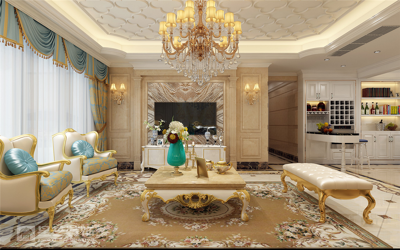 南寧星藝裝飾陳忠波設計師專業(yè)設計的錢隆首府138平歐式風格裝修案例