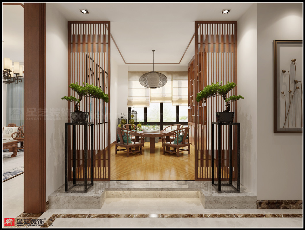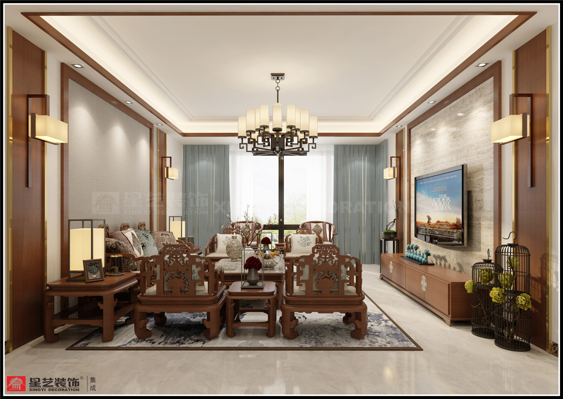 南寧星藝裝飾陳忠波設(shè)計師專業(yè)設(shè)計的天譽花園152平中式風格裝修案例
