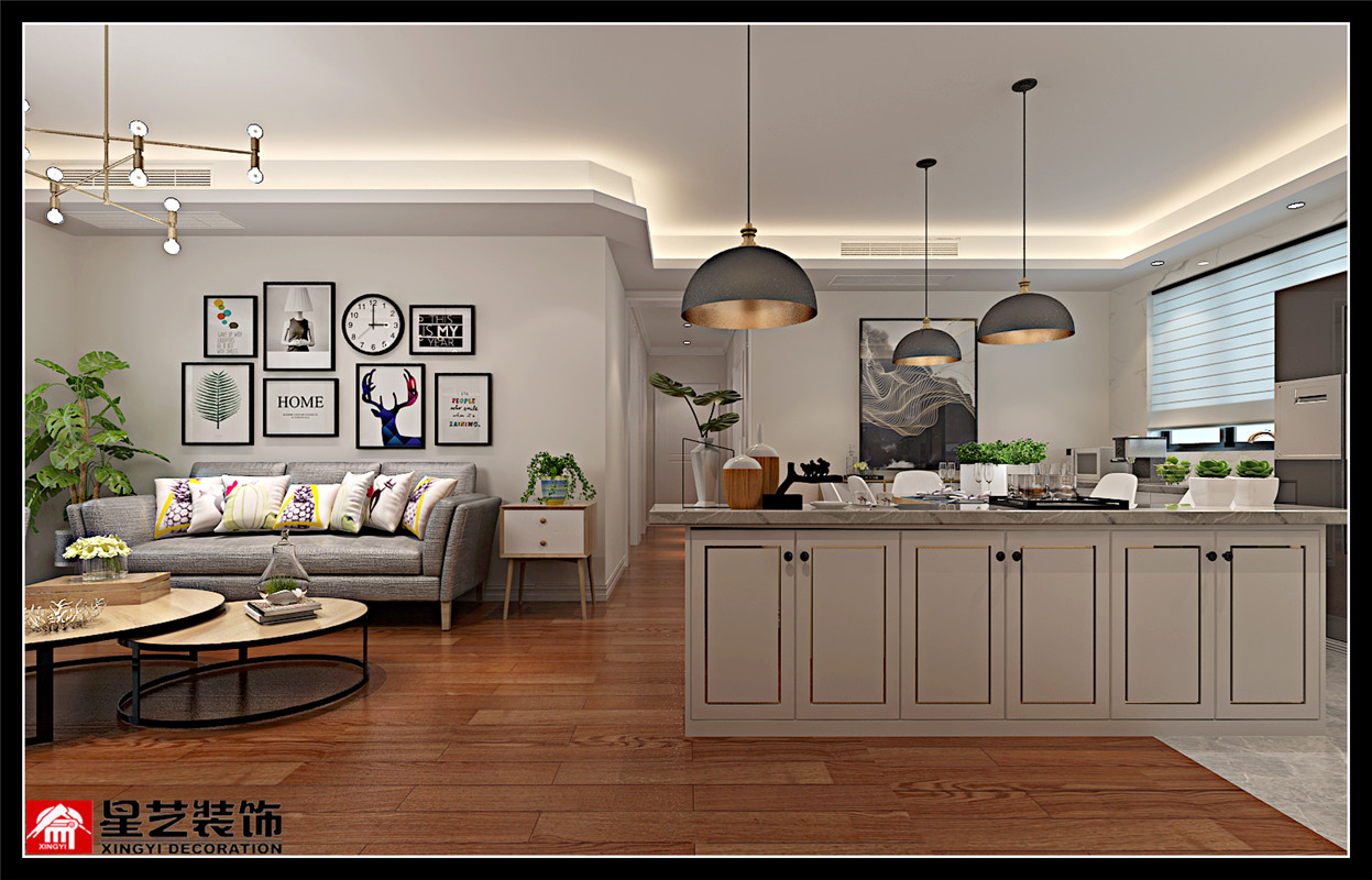 南寧星藝裝飾馬瓏萍設(shè)計(jì)師專業(yè)設(shè)計(jì)的保利大江郡130平北歐簡(jiǎn)約裝修案例,我大概是和保利比較有緣分,接觸保利小區(qū)的客戶相對(duì)多一些,這是一對(duì)年輕夫妻,有兩個(gè)很可愛(ài)乖巧的兒子,平時(shí)會(huì)回父母家吃飯比較多,房子樓層位于高層,環(huán)江視野非常好,柳江晚上的夜景更是十分迷人,所以在戶型結(jié)構(gòu)上將廚房和餐區(qū)相結(jié)合,在這里除了就餐的功能,更多的是與小朋友間的互動(dòng),比如:烘焙點(diǎn)心,手工制作,父母輔導(dǎo)作業(yè)等等…入門(mén)使用虛化的設(shè)計(jì)手法,矮柜作裝飾結(jié)合收納功能,使用燈飾做玄關(guān)的視覺(jué)緩沖,拋開(kāi)傳統(tǒng)結(jié)構(gòu),以時(shí)尚的生活步伐為中心,開(kāi)闊空間,增加靈動(dòng)的多變的生活功能。