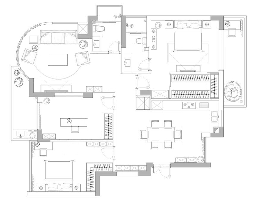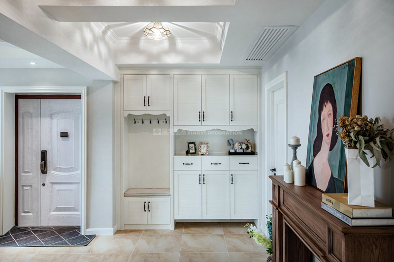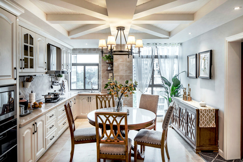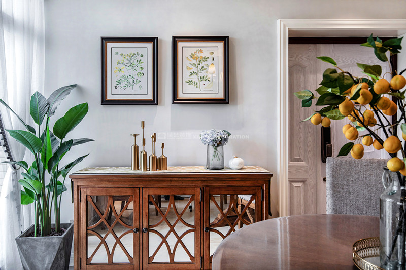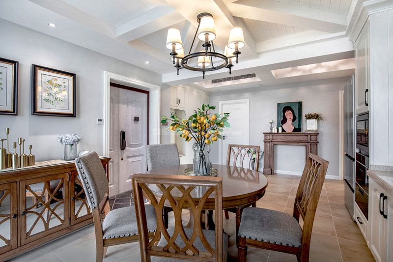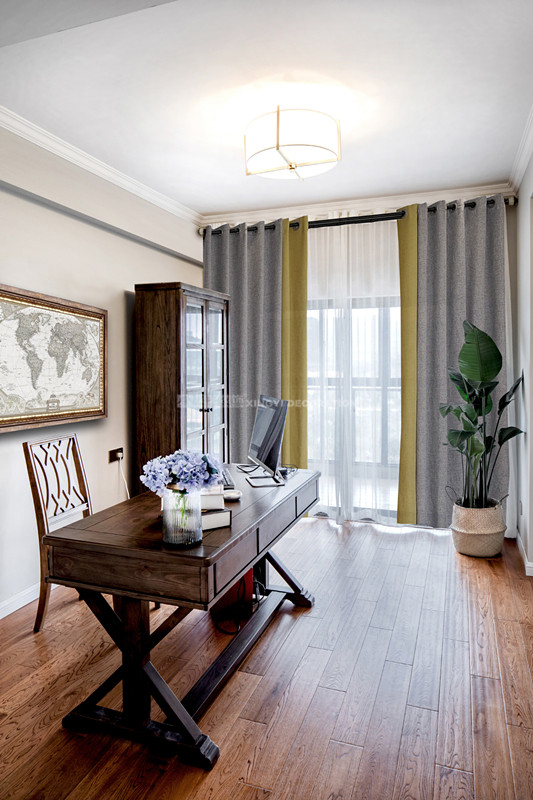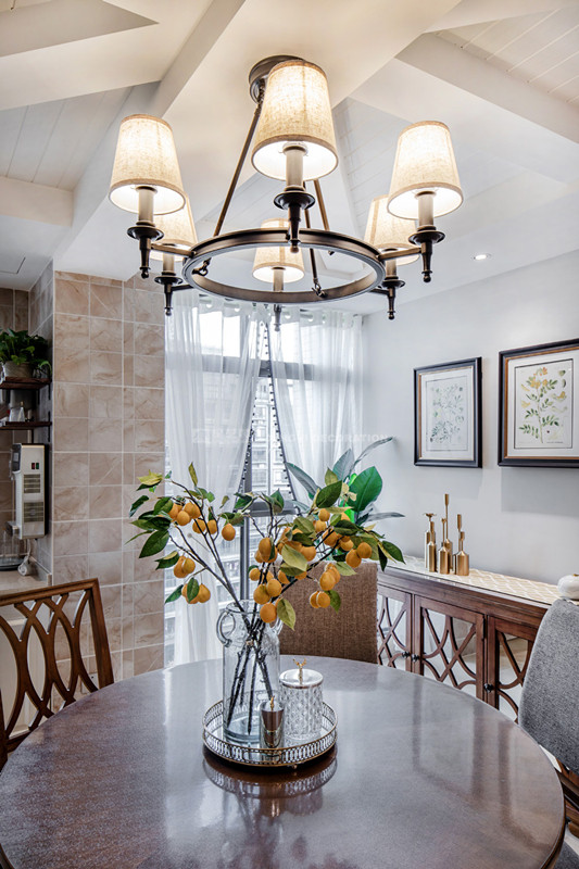 本次設(shè)計(jì)的案例坐落于美麗的青秀山腳下,南面的窗戶把優(yōu)美的風(fēng)景凈收眼底,正入冬季,當(dāng)暖暖的陽(yáng)光灑下沙發(fā),有種被幸?;\罩的溫暖。通過(guò)和業(yè)主的溝通分析,戶型的合理與否,并不在于大小,而在于房屋各個(gè)部分之間的比例與布局關(guān)系。原戶型的布局并不合適他們一家三口的生活習(xí)慣及功能需求,所以在本案空間總體設(shè)計(jì)上進(jìn)行了解構(gòu)重組,最終定位為簡(jiǎn)美風(fēng)格。原客廳和主臥做了調(diào)換,主臥增加了衣帽間,把最美的落地窗風(fēng)景和采光留給了客廳,書房和小孩房把原過(guò)道外擴(kuò)空間利用起來(lái),廚房和餐廳打開(kāi)融合到一起,公共空間動(dòng)靜分離,洗手間干濕分離,生活陽(yáng)臺(tái)留下了朝南的一面,另一個(gè)大陽(yáng)臺(tái)直接納入到主臥作為化妝區(qū)使用。整個(gè)家居空間公私分區(qū),動(dòng)區(qū)包括客廳、廚房、餐廳等,日?;顒?dòng)接待客人主要在動(dòng)區(qū);靜區(qū)主要用于休息的隱私空間,包括臥室、書房、衛(wèi)生間、衣帽間等。每個(gè)房間的私密性與其功能都應(yīng)該是相輔相成的,并在總體格局上表現(xiàn)為一種依次遞增的趨勢(shì)。墻面硬裝上不加過(guò)多修飾與約束的美式風(fēng)格,淺色系的沙發(fā),木質(zhì)感的茶幾搭配一株綠色的植物,傳遞著簡(jiǎn)潔舒適的氣息。在淡黃色光線的映襯下呈現(xiàn)出雅致浪漫的休閑式浪漫。開(kāi)放式的廚房,懷舊感的墻磚,凸顯著美式風(fēng)格的自由,天花假梁的造型處理上別具一格。最終呈現(xiàn)出這樣一個(gè)自由隨意、簡(jiǎn)潔懷舊、實(shí)用舒適的家居空間。