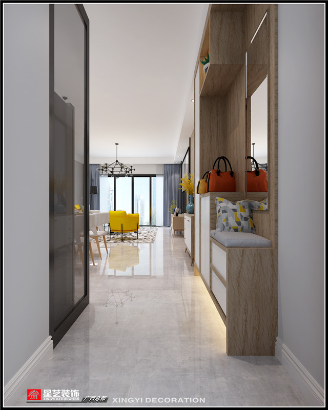 首先在功能方面,要充分滿足業(yè)主的生活要求,客廳是交友娛樂中心,空間做大一點(diǎn)既大方用起來舒適性很強(qiáng),客廳墻面色彩為米黃色,屬暖色調(diào)。在入口處設(shè)計(jì)鞋柜屏風(fēng)玄關(guān)。